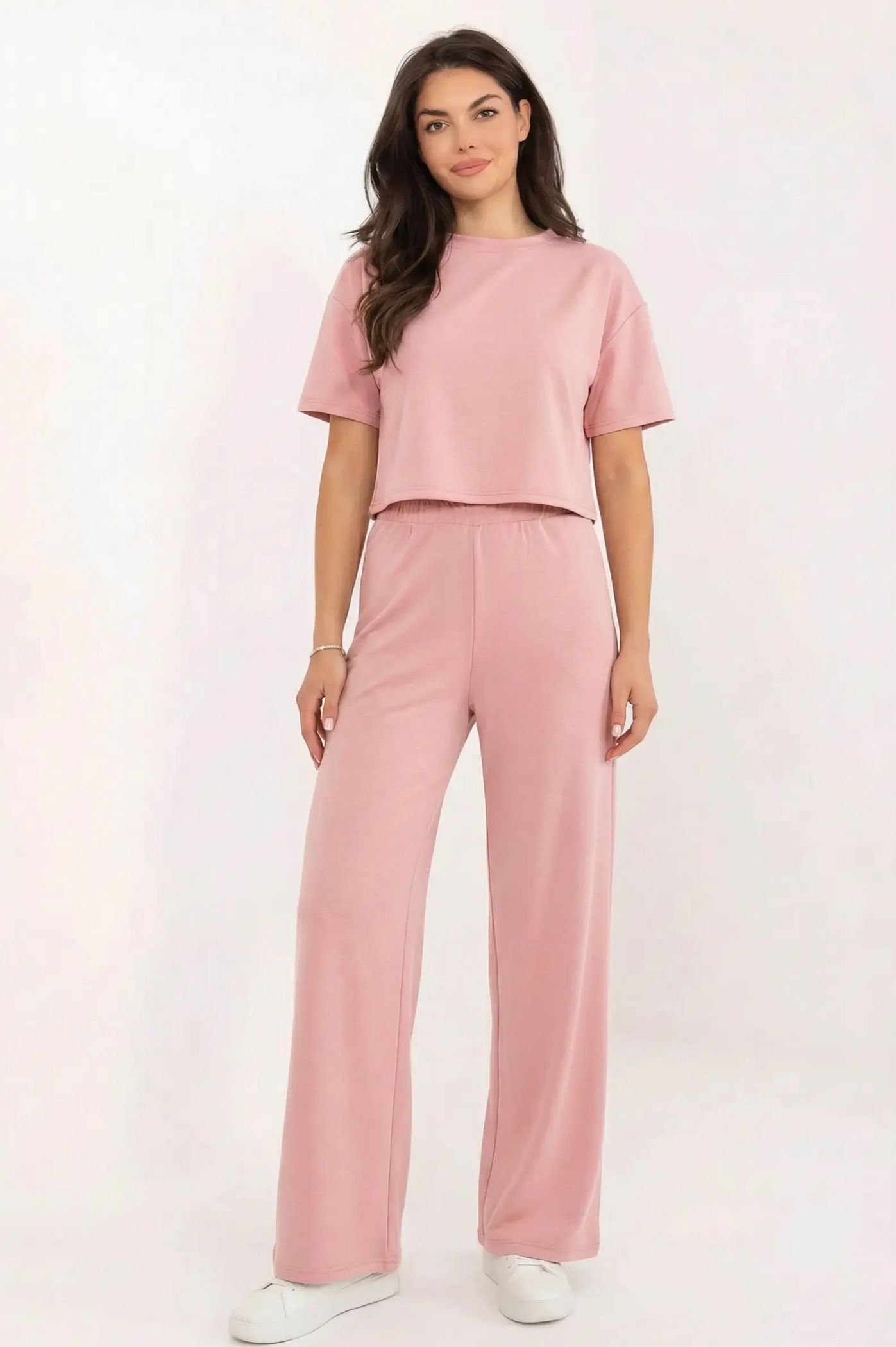 Το απόλυτο activewear & lounge σετ για τις γυναίκες που δεν θυσιάζουν το στυλ για την άνεση. Αυτό το σετ δύο τεμαχίων προσφέρει ένα ολοκληρωμένο, effortless look για τις καθημερινές σας βόλτες ή το σπίτι. Κοντομάνικη μπλούζα σε cropped γραμμή με άνετη λαιμόκοψη, ιδανική για layering ή για να φορεθεί μόνη της. Παντελόνι φόρμας σε άνετη, φαρδιά γραμμή με ελαστική μέση για τέλεια εφαρμογή και ελευθερία κινήσεων. Μπορεί να φορεθεί ως σετ για ένα monochromatic look ή συνδυάστε τα ξεχωριστά με άλλα κομμάτια της συλλογής σας.