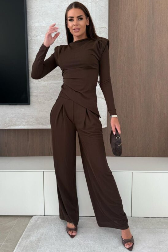 Αναβάθμισε το στυλ σου με αυτό το κομψό γυναικείο σετ. Περιλαμβάνει μπλούζα με ασύμμετρη εφαρμογή και διακριτικές βάτες για σικάτη σιλουέτα, καθώς και άνετη παντελόνα με λάστιχο στη μέση και πλαϊνές τσέπες. Το ιδανικό outfit για κάθε περίσταση από το γραφείο μέχρι μια απογευματινή έξοδο. Συνδύασέ το με ψηλοτάκουνα ή sneakers για διαφορετικό look κάθε φορά.