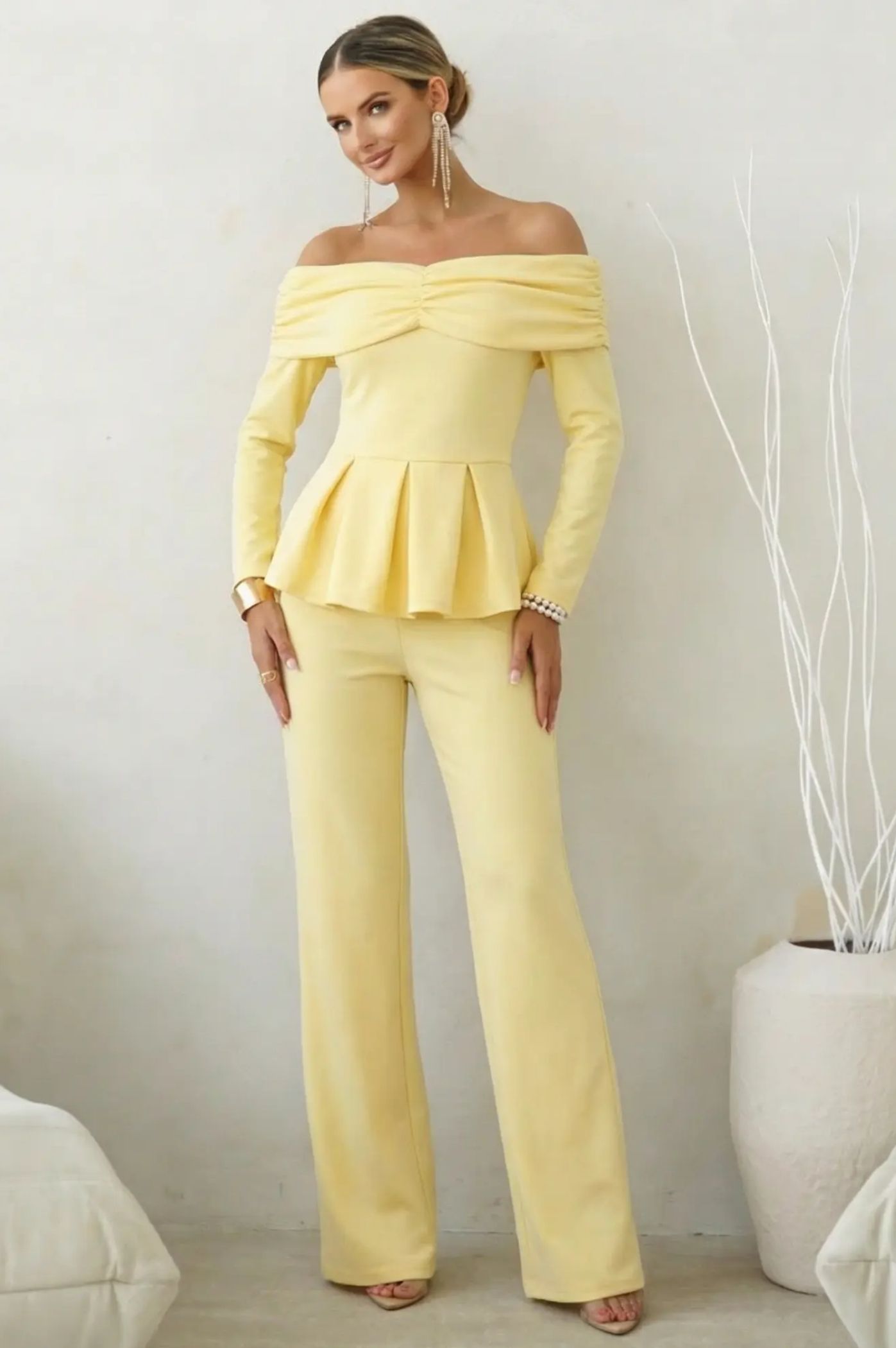 ΣET OFF-SHOULDER PEPLUM TOP ΚΑΙ ΠΑΝΤΕΛΟΝΙ – ΚΙΤΡΙΝΟ