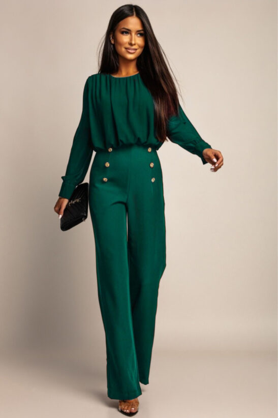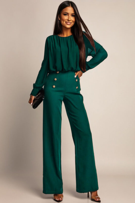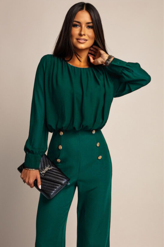 Αν ψάχνεις ένα σετ που αποπνέει κομψότητα και δυναμισμό, μόλις το βρήκες. Αυτό το σύνολο είναι η τέλεια επιλογή για εμφανίσεις που συνδυάζουν στιλ και άνεση. Η μπλούζα με αέρινη διαφάνεια στα μανίκια προσθέτει μια διακριτική θηλυκότητα, ενώ το ψηλόμεσο παντελόνι με τα εντυπωσιακά χρυσά κουμπιά κολακεύει τη σιλουέτα και χαρίζει αρχοντικό ύφος.