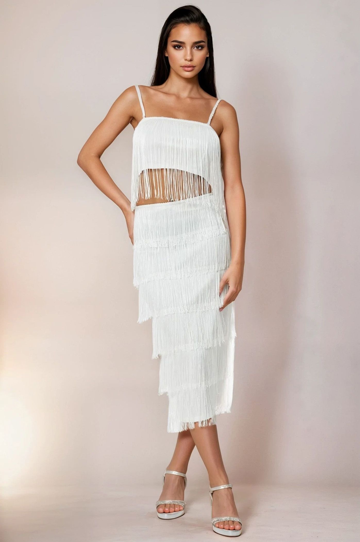 Αναδείξτε το στυλ σας με αυτό το σετ. Εμπνευσμένο από την Art Deco εποχή και το στυλ της δεκαετίας του '20, φέρνοντας έναν αέρα μυστηρίου και δυναμισμού. Τα πλούσια, διαδοχικά κρόσσια σε όλο το μήκος δίνουν κίνηση και ρυθμό, καθώς κι ένα σέξι και σύγχρονο twist. Ιδανικό για πάρτι, χορό, ή μια ξεχωριστή βραδινή έξοδο.