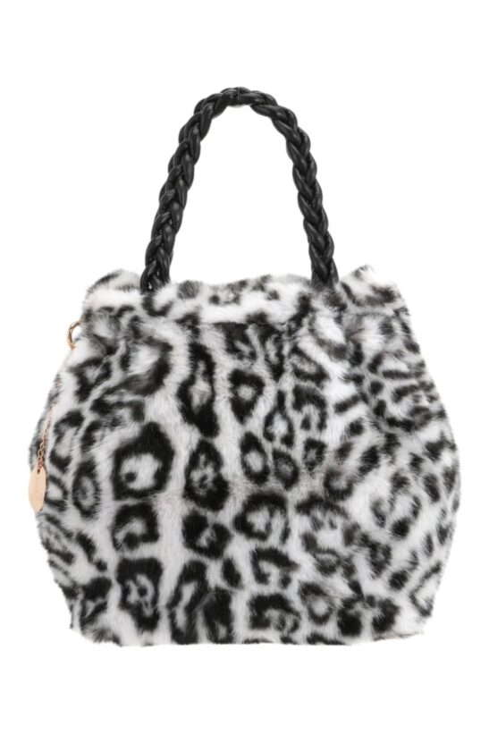 Προσθέστε έναν τόνο άγριας ομορφιάς στο στυλ σας με αυτή την ξεχωριστή γούνινη τσάντα χειρός. Με το εντυπωσιακό animal print σχέδιο αυτή η τσάντα είναι το απόλυτο statement αξεσουάρ. Η απαλή υφή της από faux γούνα την καθιστά απίστευτα ευχάριστη στην αφή, ενώ το πλεκτό χερούλι από δερματίνη προσδίδει μια μοναδική, χειροποίητη αίσθηση. Επιπλέον, διαθέτει μια κομψή μεταλλική αλυσίδα, που σας επιτρέπει να την φορέσετε άνετα στον ώμο ή χιαστί, προσφέροντας πολλαπλές επιλογές στυλ. Ευρύχωρη και με εντυπωσιακό κούμπωμα στο πάνω μέρος, είναι ιδανική για τις βόλτες, τα ψώνια ή για να αναβαθμίσετε κάθε σας εμφάνιση.