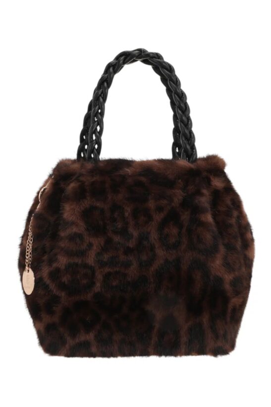 Προσθέστε έναν τόνο άγριας ομορφιάς στο στυλ σας με αυτή την ξεχωριστή γούνινη τσάντα χειρός. Με το εντυπωσιακό animal print σχέδιο αυτή η τσάντα είναι το απόλυτο statement αξεσουάρ. Η απαλή υφή της από faux γούνα την καθιστά απίστευτα ευχάριστη στην αφή, ενώ το πλεκτό χερούλι από δερματίνη προσδίδει μια μοναδική, χειροποίητη αίσθηση. Επιπλέον, διαθέτει μια κομψή μεταλλική αλυσίδα, που σας επιτρέπει να την φορέσετε άνετα στον ώμο ή χιαστί, προσφέροντας πολλαπλές επιλογές στυλ. Ευρύχωρη και με εντυπωσιακό κούμπωμα στο πάνω μέρος, είναι ιδανική για τις βόλτες, τα ψώνια ή για να αναβαθμίσετε κάθε σας εμφάνιση.