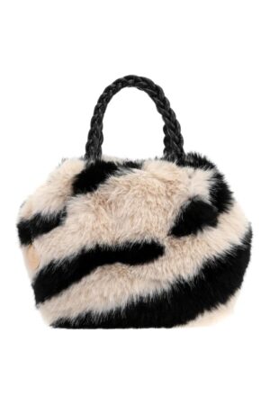 Προσθέστε έναν τόνο άγριας ομορφιάς στο στυλ σας με αυτή την ξεχωριστή γούνινη τσάντα χειρός. Με το εντυπωσιακό animal print σχέδιο αυτή η τσάντα είναι το απόλυτο statement αξεσουάρ. Η απαλή υφή της από faux γούνα την καθιστά απίστευτα ευχάριστη στην αφή, ενώ το πλεκτό χερούλι από δερματίνη προσδίδει μια μοναδική, χειροποίητη αίσθηση. Επιπλέον, διαθέτει μια κομψή μεταλλική αλυσίδα, που σας επιτρέπει να την φορέσετε άνετα στον ώμο ή χιαστί, προσφέροντας πολλαπλές επιλογές στυλ. Ευρύχωρη και με εντυπωσιακό κούμπωμα στο πάνω μέρος, είναι ιδανική για τις βόλτες, τα ψώνια ή για να αναβαθμίσετε κάθε σας εμφάνιση.