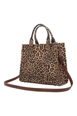 Ανακαλύψτε την ιδανική τσάντα tote για κάθε μέρα! Αυτό το ευρύχωρο μοντέλο με animal print (leopard) συνδυάζει άψογα το στιλ με την πρακτικότητα. Ο καφέ δερμάτινος πάτος της προσθέτει μια νότα κομψότητας και σταθερότητας, ενώ οι μεταλλικές λεπτομέρειες στο κάτω μέρος προστατεύουν την τσάντα και αναβαθμίζουν το design της. Είναι αρκετά μεγάλη για να χωρέσει όλα τα απαραίτητα, από το λάπτοπ και τα έγγραφά σας μέχρι τα προσωπικά σας αντικείμενα. Φοριέται άνετα στον ώμο ή στο χέρι, αποτελώντας την τέλεια επιλογή για το γραφείο, τα ψώνια ή τις βόλτες στην πόλη.