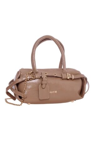 Αναδείξτε το στυλ σας με αυτή τη μοναδική γυναικεία δερμάτινη τσάντα χειρός. Κατασκευασμένη από ποιοτικό, γυαλιστερό δέρμα, προσφέρει κομψότητα και ανθεκτικότητα για κάθε περίσταση. Διαθέτει κομψά χρυσά μεταλλικά στοιχεία, διακοσμητική αλυσίδα και στιβαρές χειρολαβές για άνετη μεταφορά. Ιδανική για το γραφείο, τη βόλτα ή μια βραδινή έξοδο, η τσάντα αυτή συνδυάζει μοντέρνο design και πρακτικότητα.