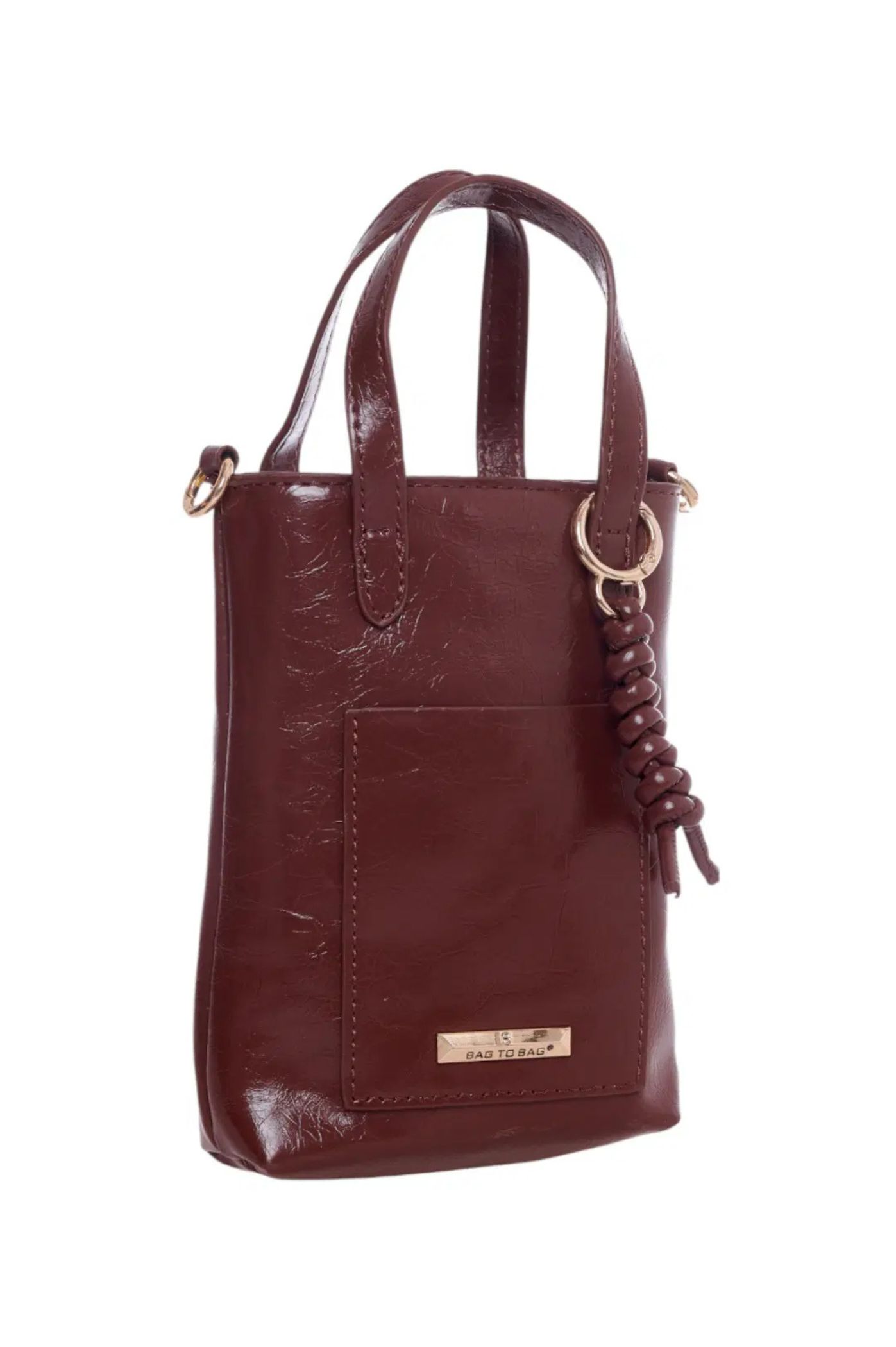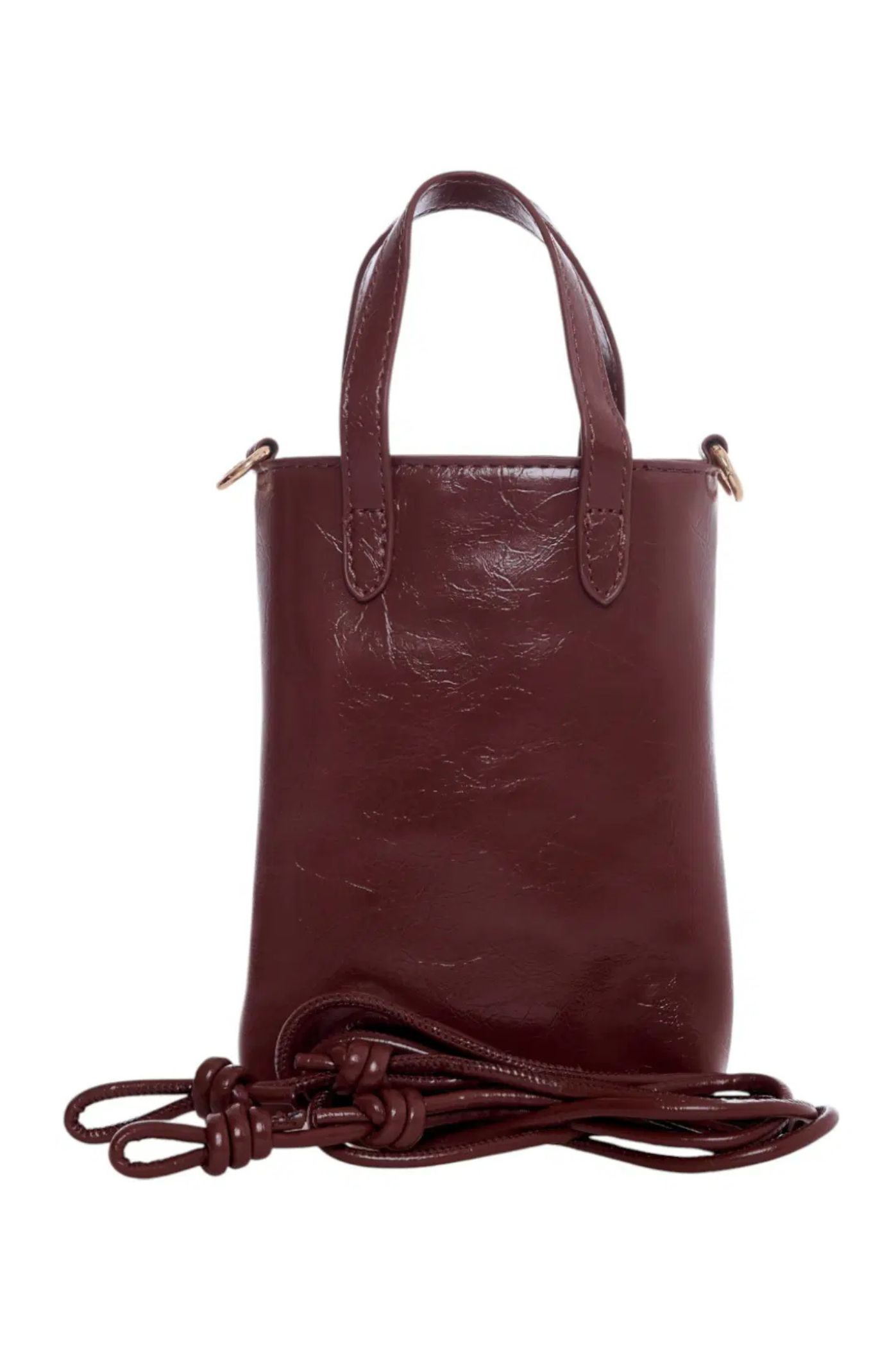 Μοντέρνα και πρακτική, αυτή η mini τσάντα χειρός είναι ιδανική για τα απολύτως απαραίτητα. Το δερματίνη φινίρισμα λουστρίνι της δίνει μια εκλεπτυσμένη όψη. Διαθέτει εξωτερική θήκη και διακοσμητικό πλεκτό λουράκι στο χερούλι. Χάρη στον μακρύ αποσπώμενο ιμάντα μπορεί να φορεθεί και χιαστί.