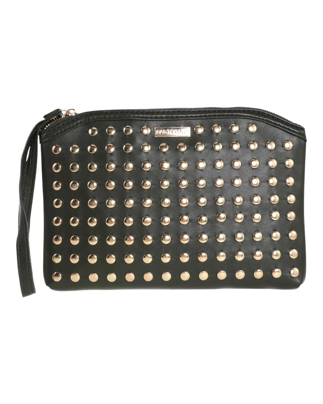 Αναδείξτε την απόλυτη ροκ-chic πινελιά για κάθε σας εμφάνιση με αυτή την εντυπωσιακή τσάντα φάκελο. Το διαχρονικό της χρώμα συνδυάζεται άψογα με τις μοντέρνες χρυσές μεταλλικές λεπτομέρειες στο μπροστινό μέρος, δημιουργώντας ένα αξεσουάρ που ξεχωρίζει. Η τσάντα διαθέτει βολικό λουράκι χειρός, που σας επιτρέπει να την κρατάτε με άνεση, ενώ το κλείσιμο με φερμουάρ εξασφαλίζει την ασφάλεια των προσωπικών σας αντικειμένων. Είναι ιδανική για να χωρέσει τα απαραίτητα, όπως το κινητό, το πορτοφόλι και τα κλειδιά σας. Είτε για μια βραδινή έξοδο είτε για να αναβαθμίσετε ένα casual look, αυτή η τσάντα είναι η τέλεια επιλογή για να προσθέσετε στυλ και χαρακτήρα.