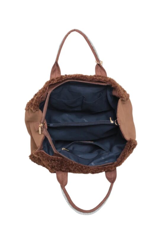 Ανανεώστε το στυλ σας με αυτή την εντυπωσιακή fluffy τσάντα χειρός. Με την απαλή υφή της είναι το απόλυτο αξεσουάρ για τις πιο κρύες μέρες του χρόνου. Εκτός από το ξεχωριστό της ύφασμα, η τσάντα διαθέτει εντυπωσιακές μεταλλιζέ ασημί λεπτομέρειες στα χερούλια της, οι οποίες της προσδίδουν μια μοναδική, μοντέρνα πινελιά. Είναι αρκετά ευρύχωρη για να χωρέσει όλα τα απαραίτητα, ενώ το αποσπώμενο λουράκι ώμου σας επιτρέπει να την φορέσετε με διαφορετικούς τρόπους, ανάλογα με τη διάθεσή σας. Είτε για μια βόλτα στην πόλη είτε για μια απογευματινή έξοδο, αυτή η τσάντα θα αναβαθμίσει κάθε σας εμφάνιση!