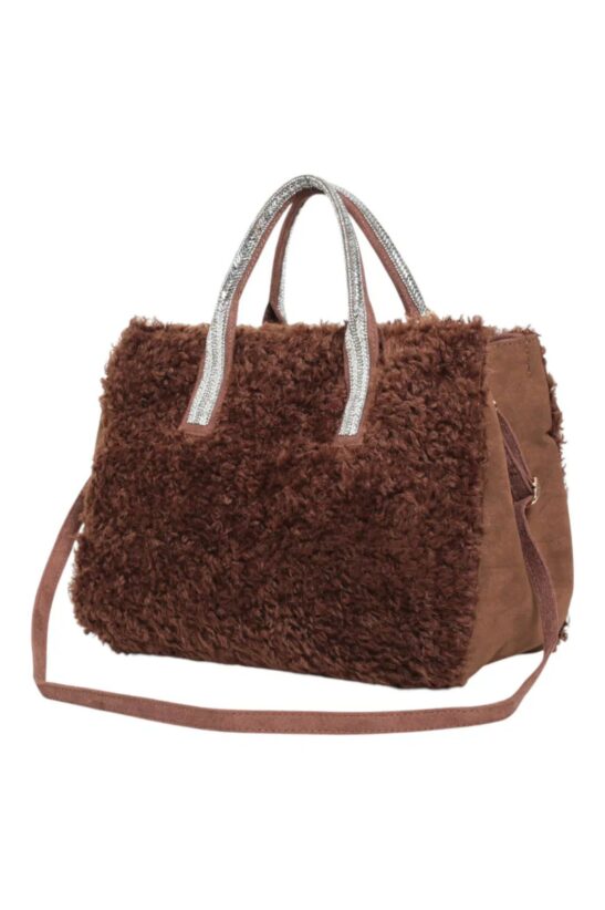 ΤΣΑΝΤΑ ΧΕΙΡΟΣ FLUFFY ΜΕ ΜΕΤΑΛΛΙΖΕ ΛΟΥΡΑΚΙ – ΚΑΦΕ