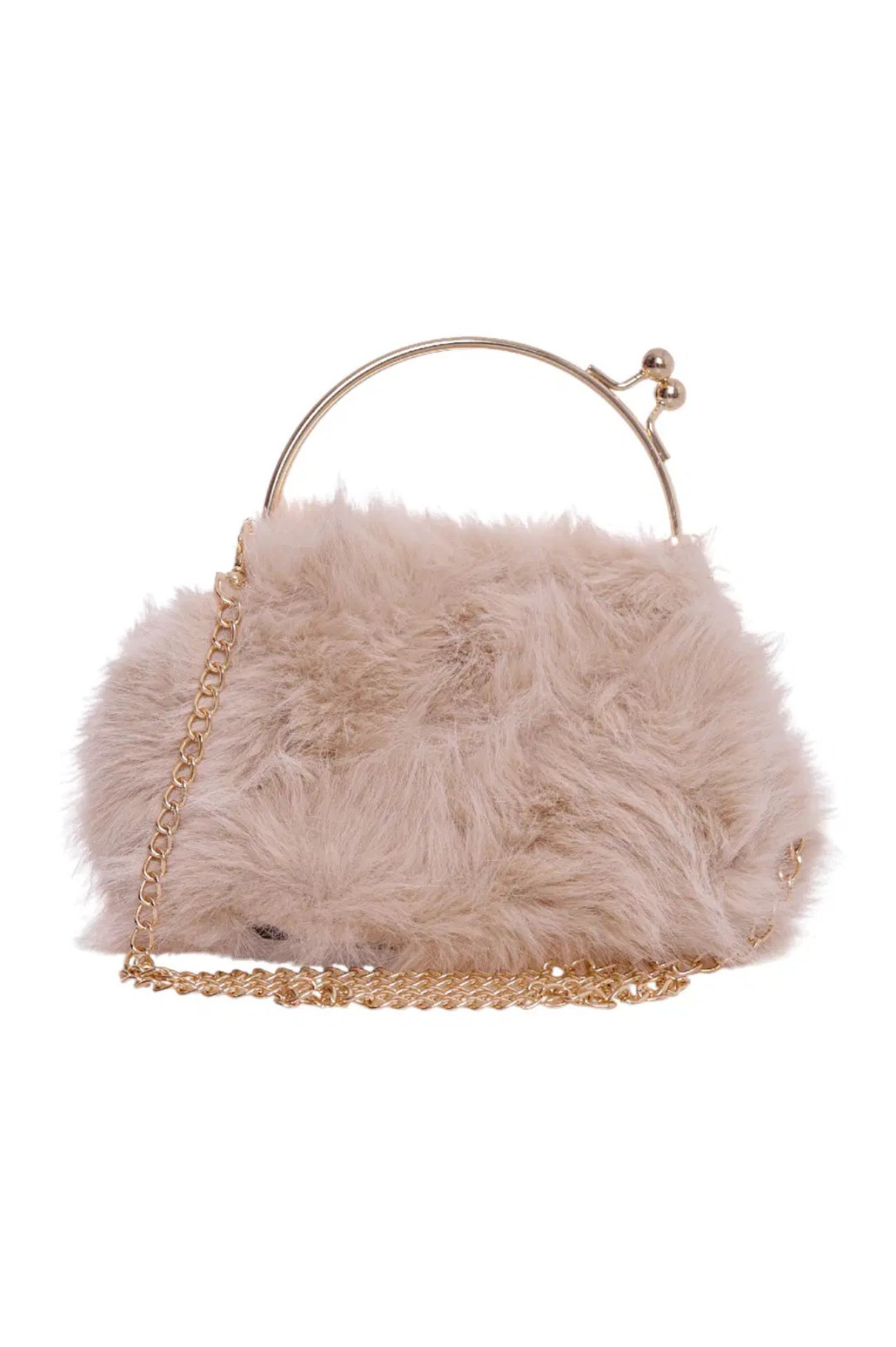 Αναδείξτε τις βραδινές και επίσημες εμφανίσεις σας με αυτήν τη μοναδική μικρή γούνινη τσάντα χειρός. Η πλούσια Faux Fur σε υφή  προσδίδει έναν αισθησιακό και glamorous χαρακτήρα. Αυτό που την κάνει πραγματικά ξεχωριστή είναι το ιδιαίτερο μεταλλικό κούμπωμα (kiss-lock) σε χρυσό χρώμα, το οποίο παραπέμπει σε vintage πορτοφόλια και ρετρό clutch bags. Διαθέτει επίσης μια διακοσμητική χρυσή αλυσίδα και μενταγιόν.