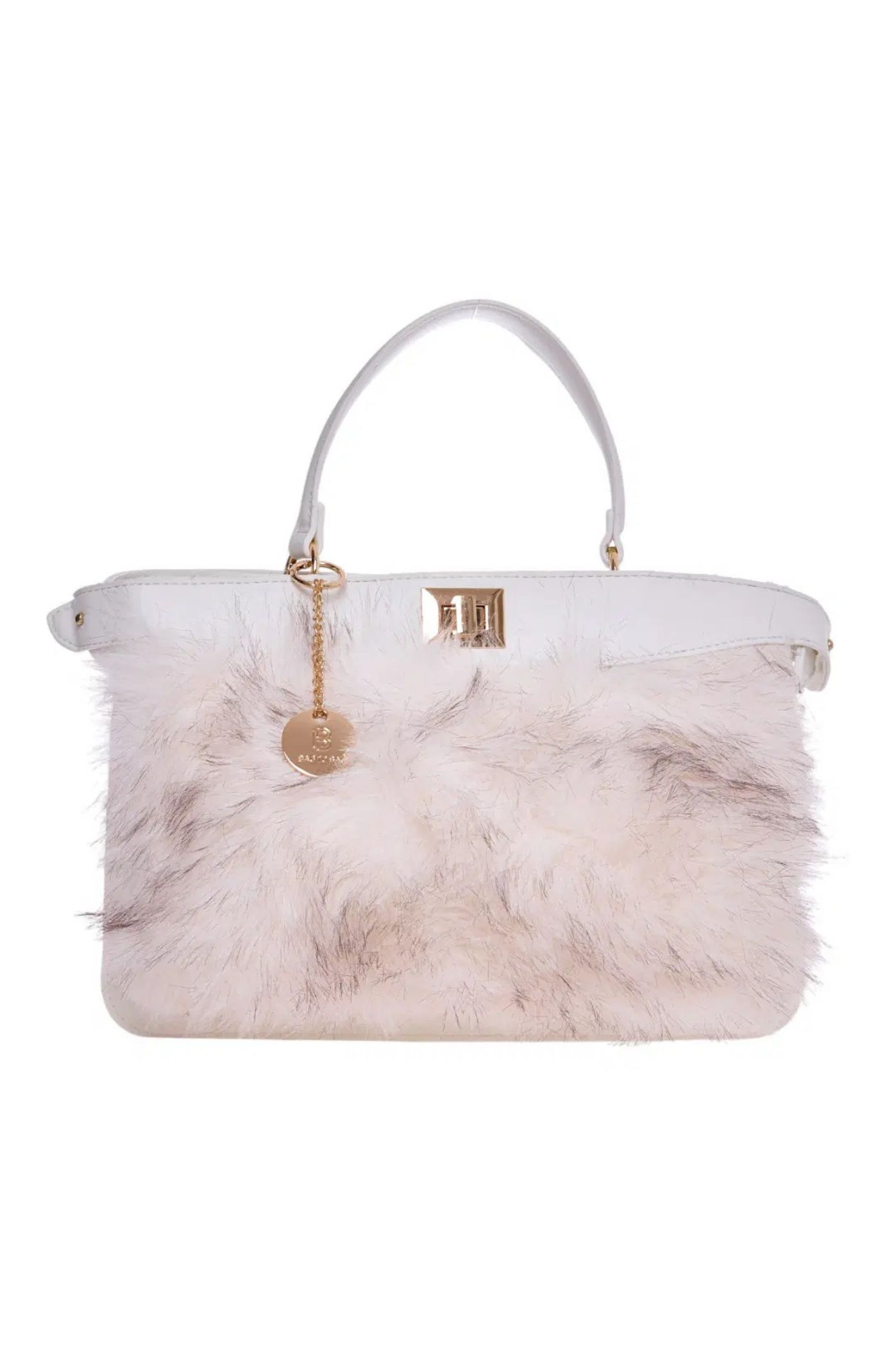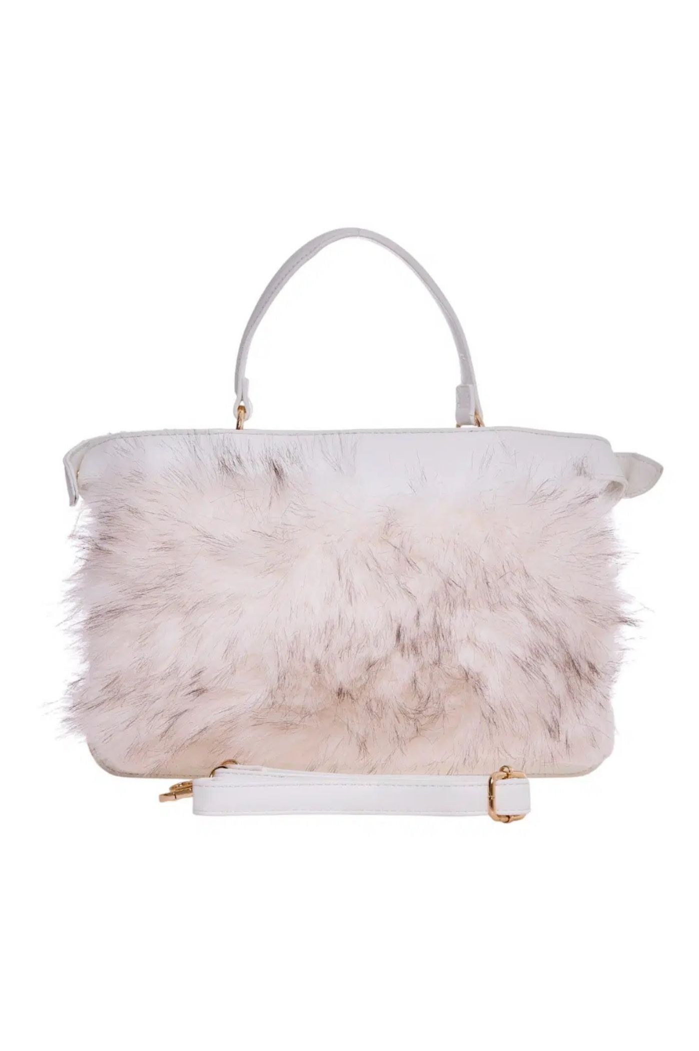 Αναδείξτε το χειμωνιάτικο look σας με την εντυπωσιακή γούνινη τσάντα χειρός! Αυτό το κομψό αξεσουάρ συνδυάζει την απαλή, οικολογική γούνα με λεπτομέρειες από λεία δερματίνη (PU) στο πάνω μέρος και το χερούλι. Διαθέτει χρυσή μεταλλική αγκράφα για ασφάλεια και στυλ, καθώς και ένα διακριτικό χρυσό μενταγιόν. Είναι η ιδανική τσάντα χειρός για εμφανίσεις που ξεχωρίζουν, προσφέροντας παράλληλα άνετο χώρο για τα απαραίτητα.