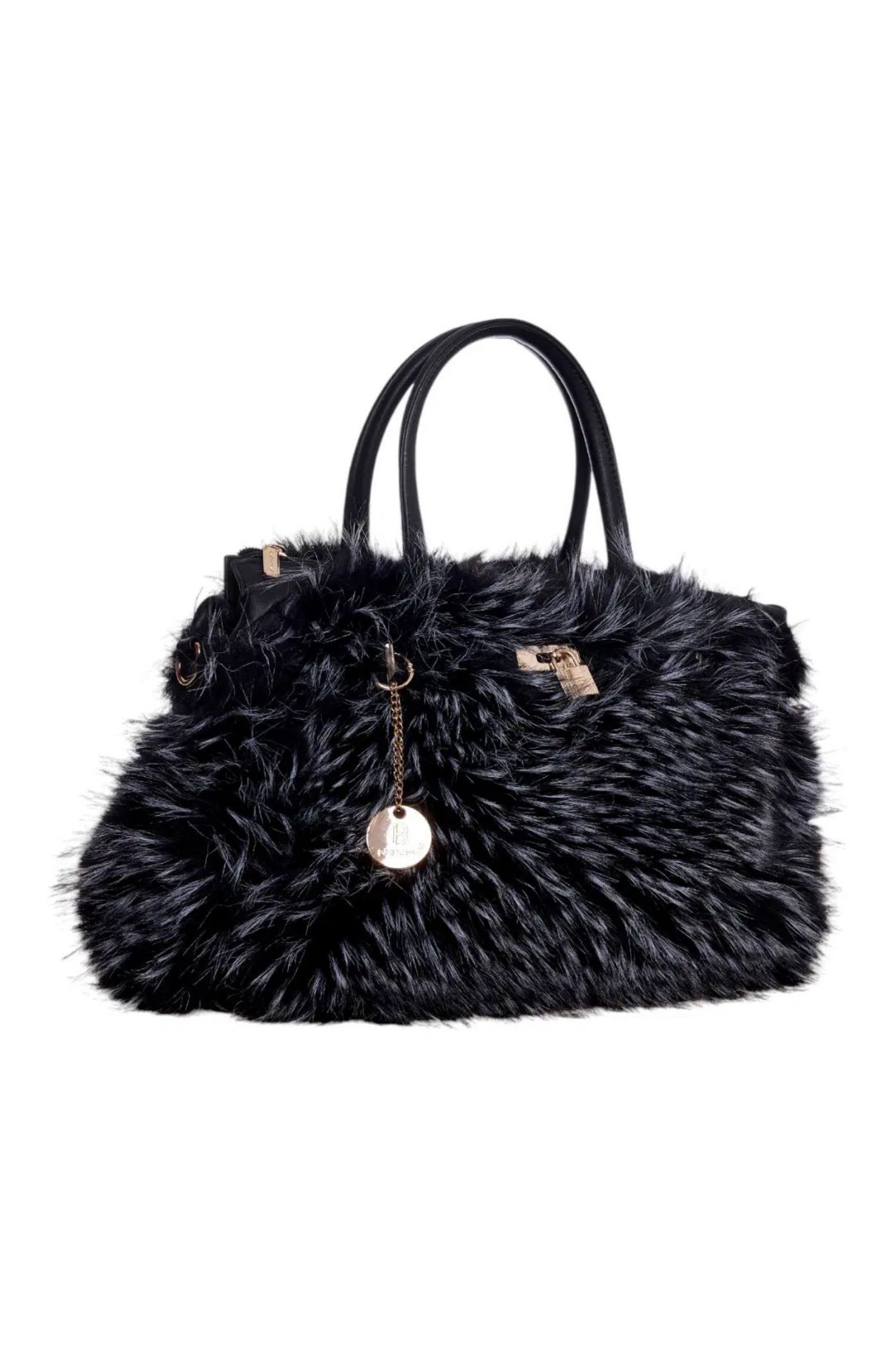 Αναδείξτε το χειμωνιάτικο look σας με την εντυπωσιακή γούνινη τσάντα χειρός! Αυτό το κομψό αξεσουάρ συνδυάζει την απαλή, οικολογική γούνα με λεπτομέρειες από λεία δερματίνη (PU) στο πάνω μέρος και το χερούλι. Διαθέτει χρυσή μεταλλική αγκράφα για ασφάλεια και στυλ, καθώς και ένα διακριτικό χρυσό μενταγιόν. Είναι η ιδανική τσάντα χειρός για εμφανίσεις που ξεχωρίζουν, προσφέροντας παράλληλα άνετο χώρο για τα απαραίτητα.