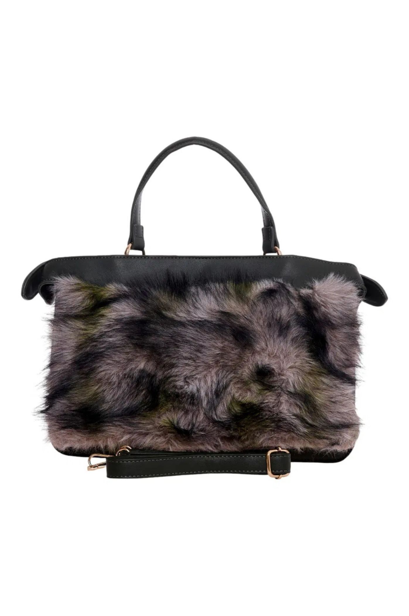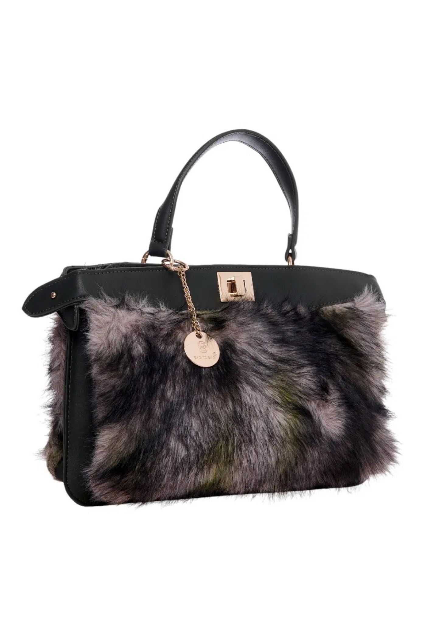 Αναδείξτε το χειμωνιάτικο look σας με την εντυπωσιακή γούνινη τσάντα χειρός! Αυτό το κομψό αξεσουάρ συνδυάζει την απαλή, οικολογική γούνα με λεπτομέρειες από λεία δερματίνη (PU) στο πάνω μέρος και το χερούλι. Διαθέτει χρυσή μεταλλική αγκράφα για ασφάλεια και στυλ, καθώς και ένα διακριτικό χρυσό μενταγιόν. Είναι η ιδανική τσάντα χειρός για εμφανίσεις που ξεχωρίζουν, προσφέροντας παράλληλα άνετο χώρο για τα απαραίτητα.