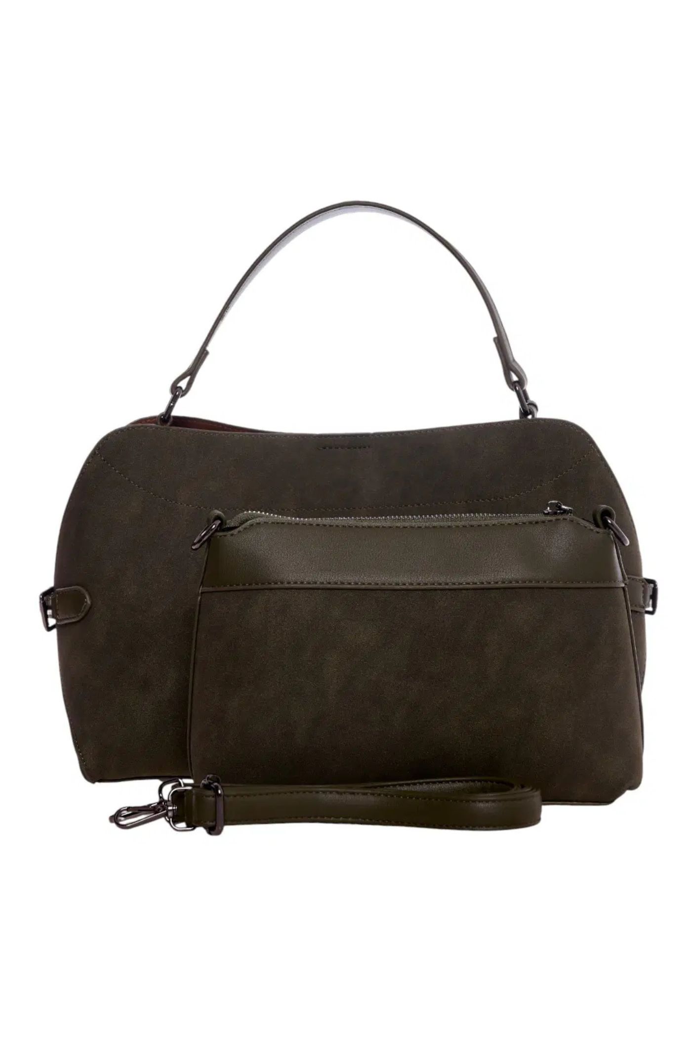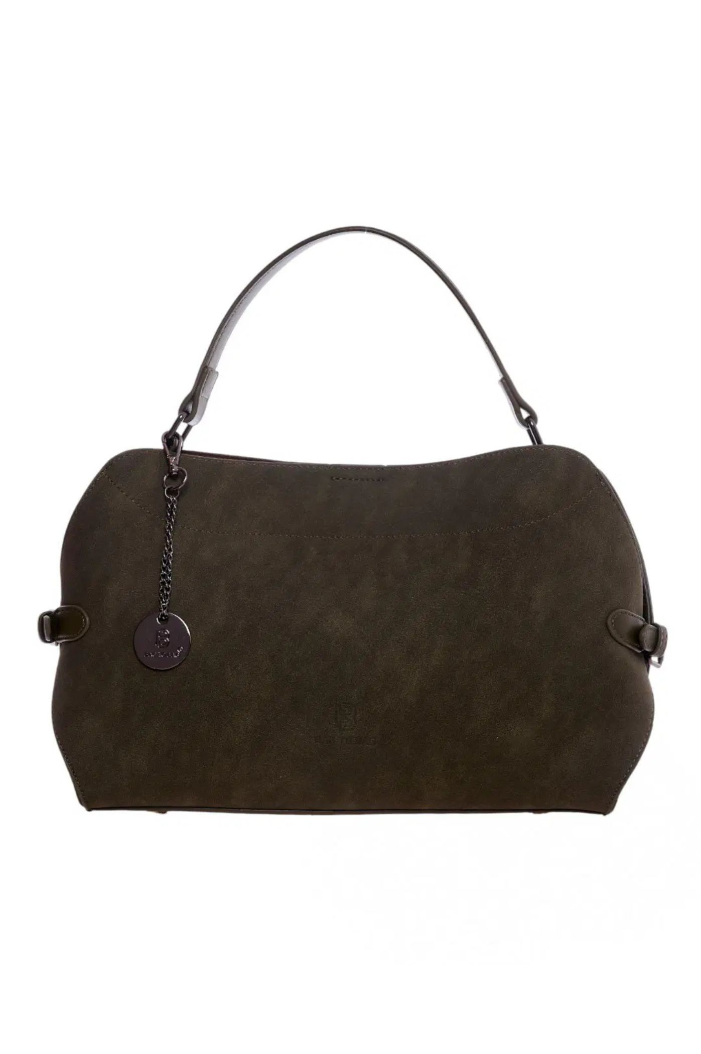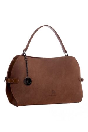 Αυτή η μοντέρνα τσάντα χειρός  είναι το απόλυτο αξεσουάρ που θα απογειώσει το καθημερινό σας στυλ. Κατασκευασμένη από υψηλής ποιότητας υλικό που θυμίζει καστόρ , προσφέρει μια αίσθηση πολυτέλειας και απαλής υφής. Το ευρύχωρο design την καθιστά ιδανική για να μεταφέρετε όλα τα απαραίτητα, από τα προσωπικά σας αντικείμενα μέχρι ένα μικρό tablet. Το σχήμα της είναι διακριτικά μοντέρνο, ενώ οι λεπτομέρειες, όπως το μεταλλικό μενταγιόν με το logo και οι ρυθμιζόμενοι ιμάντες στα πλάγια, προσθέτουν μια chic πινελιά.