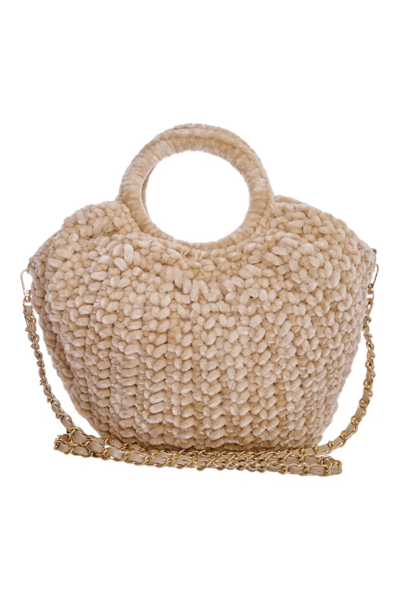 Αναδείξτε το στυλ σας με αυτήν  την εντυπωσιακή πλεκτή γούνινη τσάντα χειρός. Αυτή η τσάντα με την εντυπωσιακή πλέξη προσδίδει στυλ και άνεση στην καθημερινότητα σας και είναι must επιλογή για τις φθινοπωρινές σας εμφανίσεις.