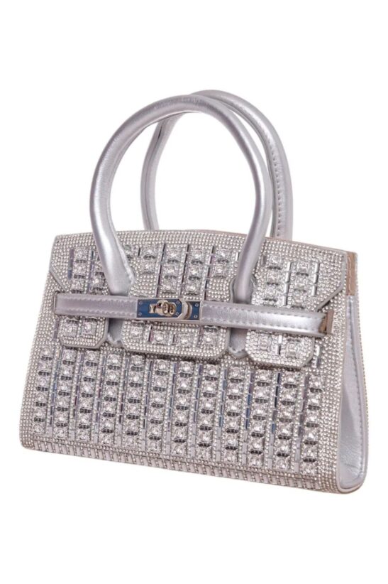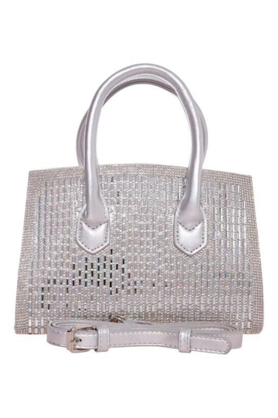 ΤΣΑΝΤΑ ΧΕΙΡΟΣ ΜΕ STRASS ΚΑΙ ΔΙΑΚΟΣΜΗΤΙΚΗ ΖΩΝΗ – SILVER