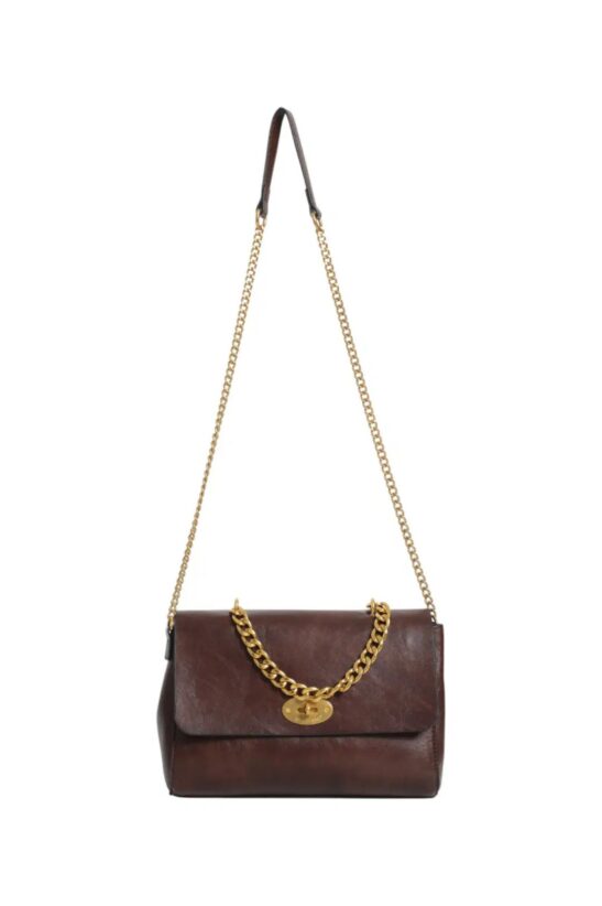 Προσθέστε μια δόση πολυτέλειας στο στυλ σας με την εκλεπτυσμένη χιαστί τσάντα. Κατασκευασμένη από υψηλής ποιότητας δερματίνη με γυαλιστερή υφή, αυτή η τσάντα ξεχωρίζει χάρη στη χοντρή χρυσή αλυσίδα που λειτουργεί και ως εντυπωσιακό διακοσμητικό στοιχείο. Διαθέτει ιδιαίτερο μεταλλικό κούμπωμα στο μπροστινό καπάκι που κλειδώνει με περιστροφή, εξασφαλίζοντας την ασφάλεια των προσωπικών σας αντικειμένων. Το λουράκι ώμου συνδυάζει χρυσή αλυσίδα με δερματίνη λεπτομέρεια για άνετη και κομψή εφαρμογή. Αυτή η μικρή τσάντα βραδινή είναι ιδανική για επίσημες εμφανίσεις, γάμους ή κάθε βραδινή έξοδο, προσδίδοντας ένα κλασικό και ταυτόχρονα μοντέρνο ύφος στο ντύσιμό σας.