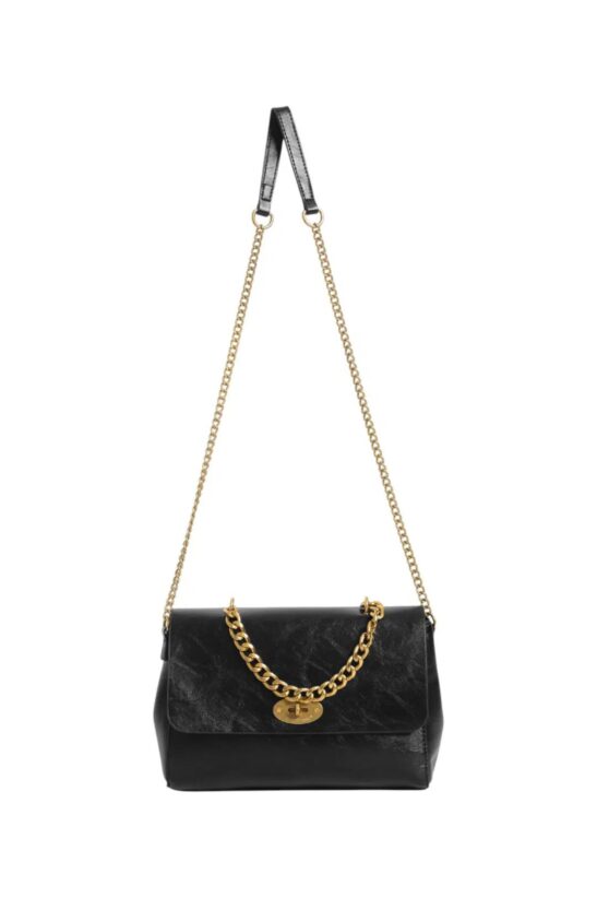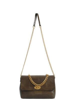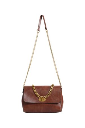 Προσθέστε μια δόση πολυτέλειας στο στυλ σας με την εκλεπτυσμένη χιαστί τσάντα. Κατασκευασμένη από υψηλής ποιότητας δερματίνη με γυαλιστερή υφή, αυτή η τσάντα ξεχωρίζει χάρη στη χοντρή χρυσή αλυσίδα που λειτουργεί και ως εντυπωσιακό διακοσμητικό στοιχείο. Διαθέτει ιδιαίτερο μεταλλικό κούμπωμα στο μπροστινό καπάκι που κλειδώνει με περιστροφή, εξασφαλίζοντας την ασφάλεια των προσωπικών σας αντικειμένων. Το λουράκι ώμου συνδυάζει χρυσή αλυσίδα με δερματίνη λεπτομέρεια για άνετη και κομψή εφαρμογή. Αυτή η μικρή τσάντα βραδινή είναι ιδανική για επίσημες εμφανίσεις, γάμους ή κάθε βραδινή έξοδο, προσδίδοντας ένα κλασικό και ταυτόχρονα μοντέρνο ύφος στο ντύσιμό σας.