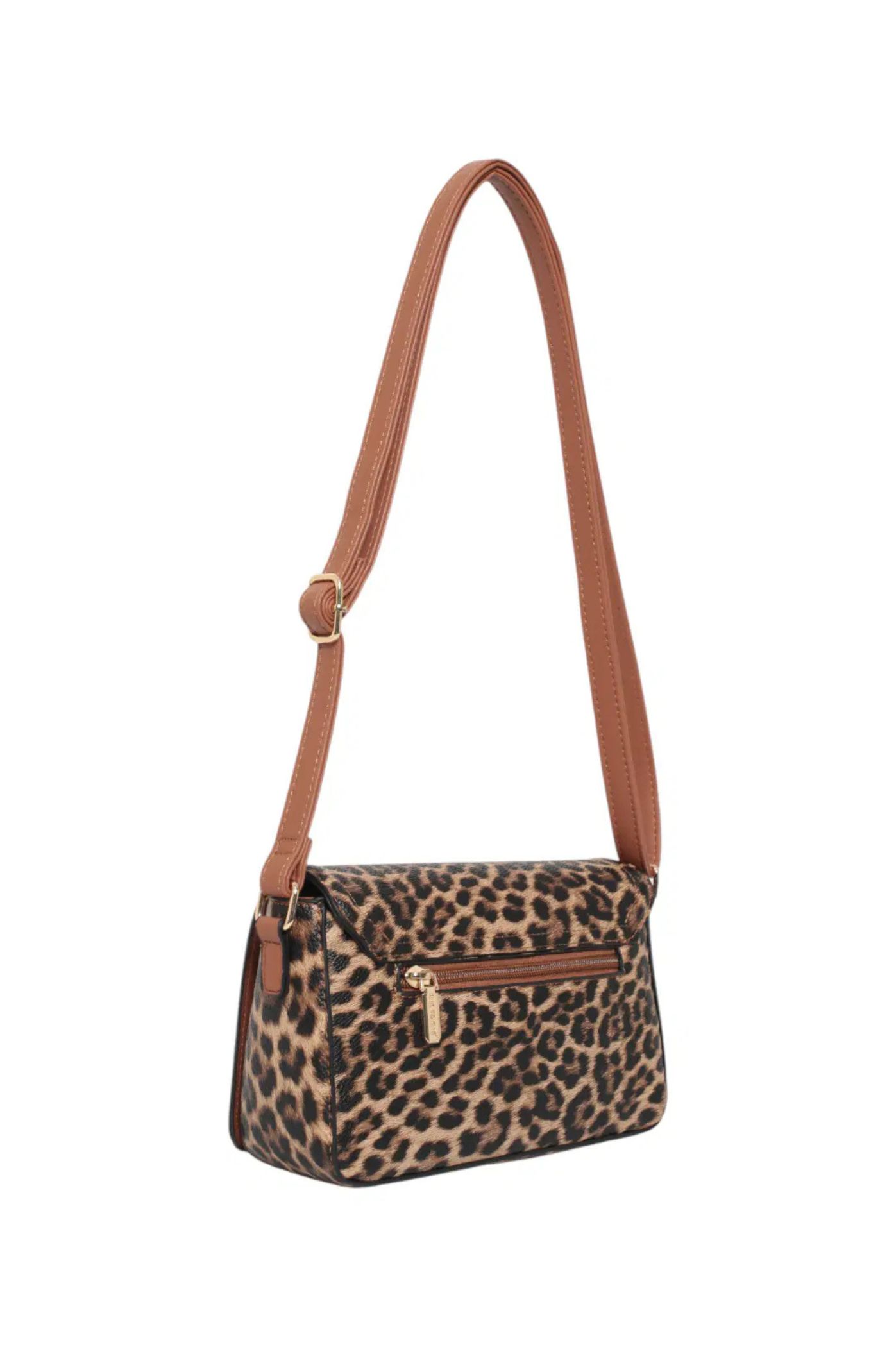 Αναδείξτε το στυλ σας με αυτή τη μικρή τσάντα ώμου - χιαστί σε εντυπωσιακό animal print! Ιδανική για να ολοκληρώσει τις βραδινές ή τις πιο τολμηρές καθημερινές σας εμφανίσεις. Με κομψό, ορθογώνιο σχήμα, αυτή η τσάντα διαθέτει καπάκι για ασφαλές κλείσιμο και ρυθμιζόμενο μαύρο λουράκι, επιτρέποντάς σας να τη φοράτε άνετα στον ώμο ή χιαστί. Το μικρό της μέγεθος είναι ιδανικό για να χωρέσει τα απολύτως απαραίτητα (κινητό, κλειδιά, πορτοφόλι), κρατώντας το στυλ σας minimal και chic. Αποκτήστε αυτό το must-have αξεσουάρ για να προσθέσετε μια πινελιά θηλυκότητας και μοντέρνου στυλ στην γκαρνταρόμπα σας.