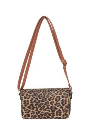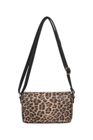 Αναδείξτε το στυλ σας με αυτή τη μικρή τσάντα ώμου - χιαστί σε εντυπωσιακό animal print! Ιδανική για να ολοκληρώσει τις βραδινές ή τις πιο τολμηρές καθημερινές σας εμφανίσεις. Με κομψό, ορθογώνιο σχήμα, αυτή η τσάντα διαθέτει καπάκι για ασφαλές κλείσιμο και ρυθμιζόμενο μαύρο λουράκι, επιτρέποντάς σας να τη φοράτε άνετα στον ώμο ή χιαστί. Το μικρό της μέγεθος είναι ιδανικό για να χωρέσει τα απολύτως απαραίτητα (κινητό, κλειδιά, πορτοφόλι), κρατώντας το στυλ σας minimal και chic. Αποκτήστε αυτό το must-have αξεσουάρ για να προσθέσετε μια πινελιά θηλυκότητας και μοντέρνου στυλ στην γκαρνταρόμπα σας.