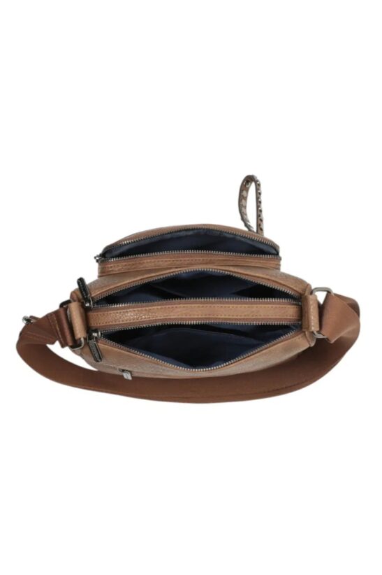Ανακαλύψτε την ιδανική χιαστί τσάντα για κάθε μέρα! Αυτή η ευρύχωρη και πρακτική τσάντα δερματίνης είναι ο τέλειος συνδυασμός στυλ και λειτουργικότητας. Διαθέτει άνετο και ρυθμιζόμενο λουράκι από ύφασμα, εξασφαλίζοντας τέλεια εφαρμογή στον ώμο ή χιαστί. Η τσάντα προσφέρει πολλαπλές θήκες με φερμουάρ (μία κύρια και μία εξωτερική μπροστινή), καθώς και διακοσμητικές λεπτομέρειες με αλυσίδα, για να κρατάτε τα αντικείμενά σας οργανωμένα και ασφαλή.
