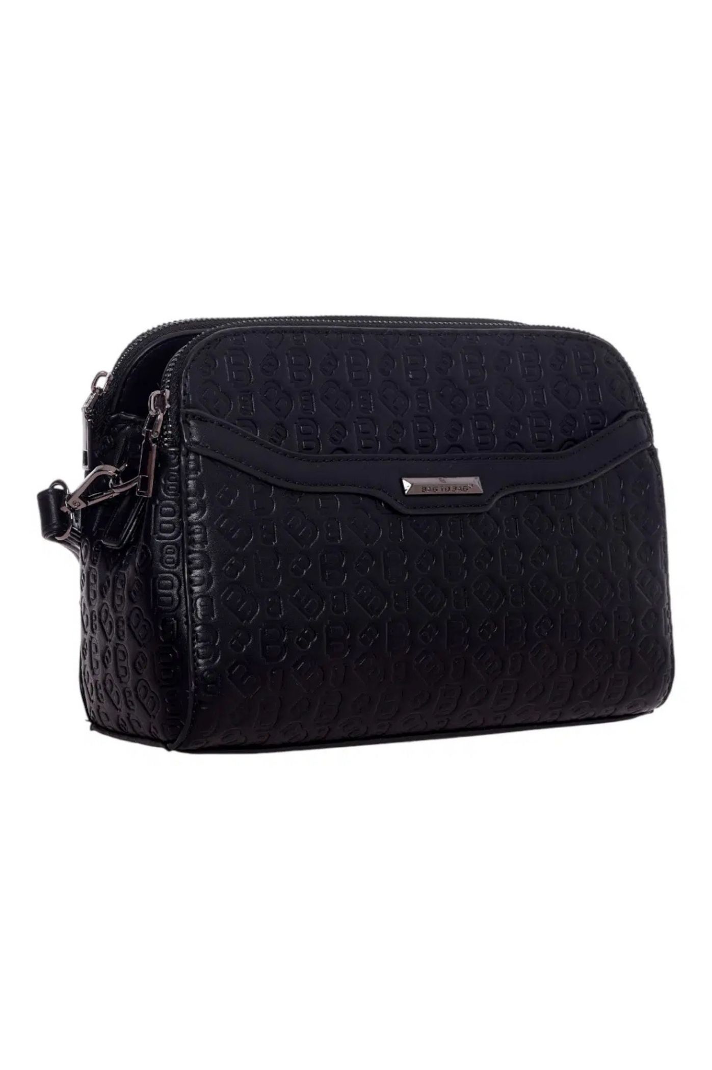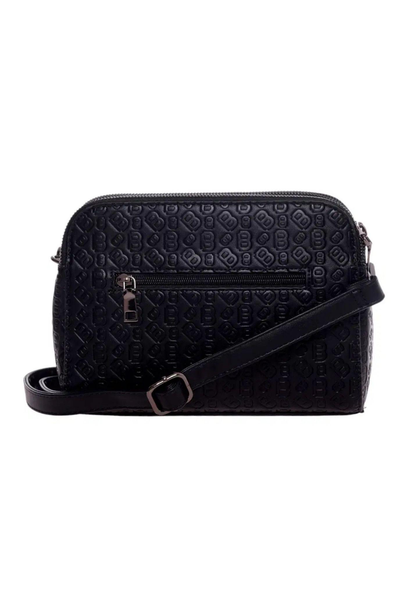Αναζητάτε μια κομψή και πρακτική τσάντα χιαστί για τις καθημερινές σας εμφανίσεις; Αυτή η ανάγλυφη τσάντα από δερματίνη σε μαύρο  χρώμα είναι το ιδανικό αξεσουάρ. Ο ιδιαίτερος σχεδιασμός με επαναλαμβανόμενο μονόγραμμα δίνει μια αίσθηση πολυτέλειας και αναβαθμίζει κάθε casual look.