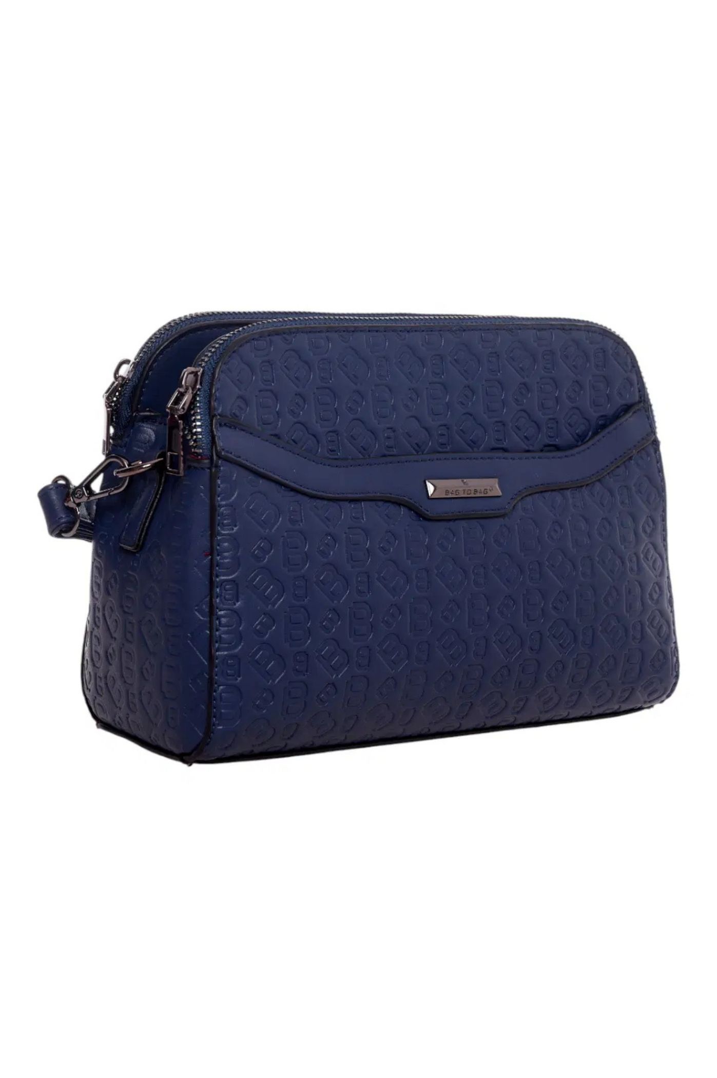 Αναζητάτε μια κομψή και πρακτική τσάντα χιαστί για τις καθημερινές σας εμφανίσεις; Αυτή η ανάγλυφη τσάντα από δερματίνη σε μπλε χρώμα είναι το ιδανικό αξεσουάρ. Ο ιδιαίτερος σχεδιασμός με επαναλαμβανόμενο μονόγραμμα δίνει μια αίσθηση πολυτέλειας και αναβαθμίζει κάθε casual look.