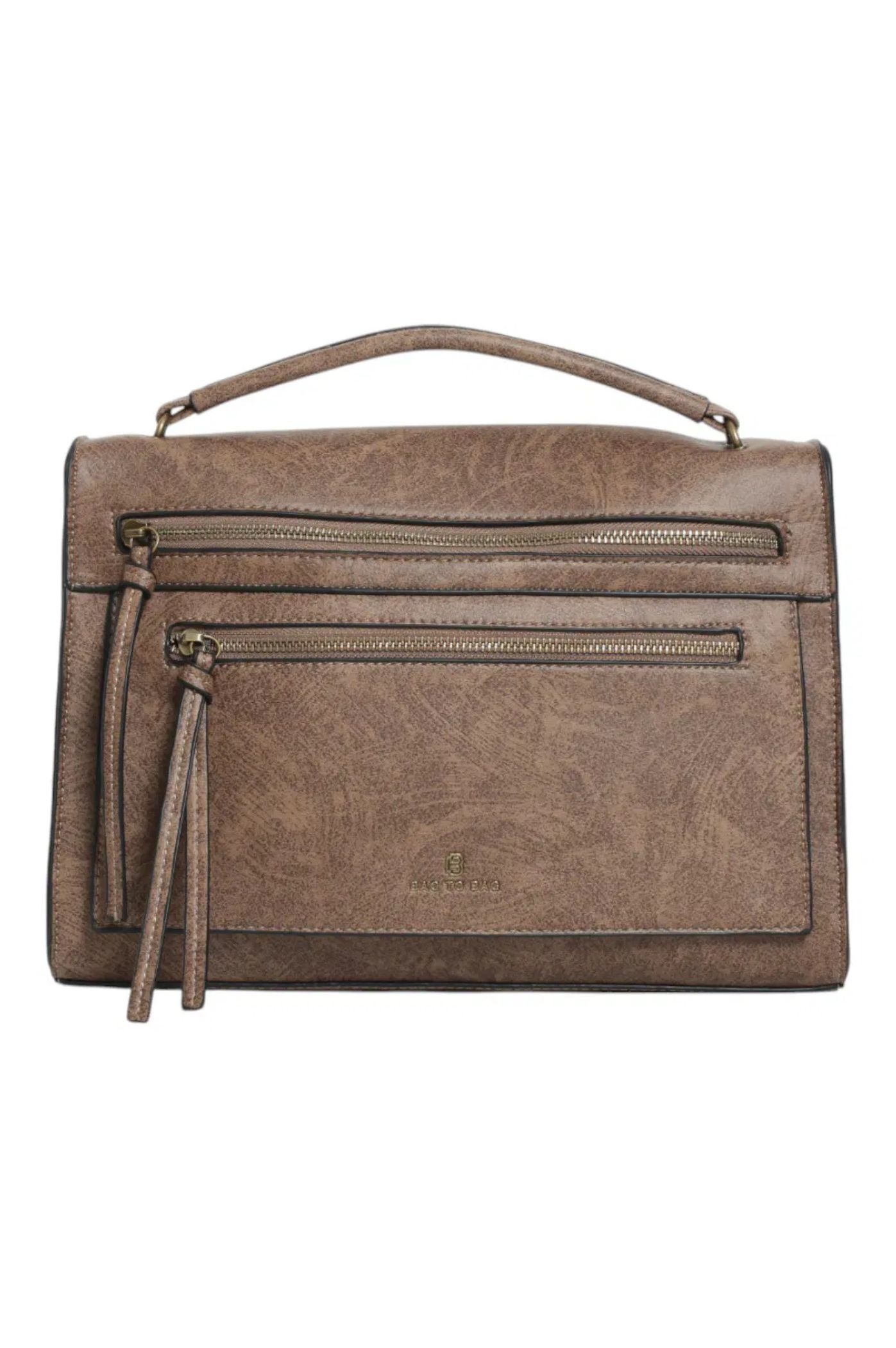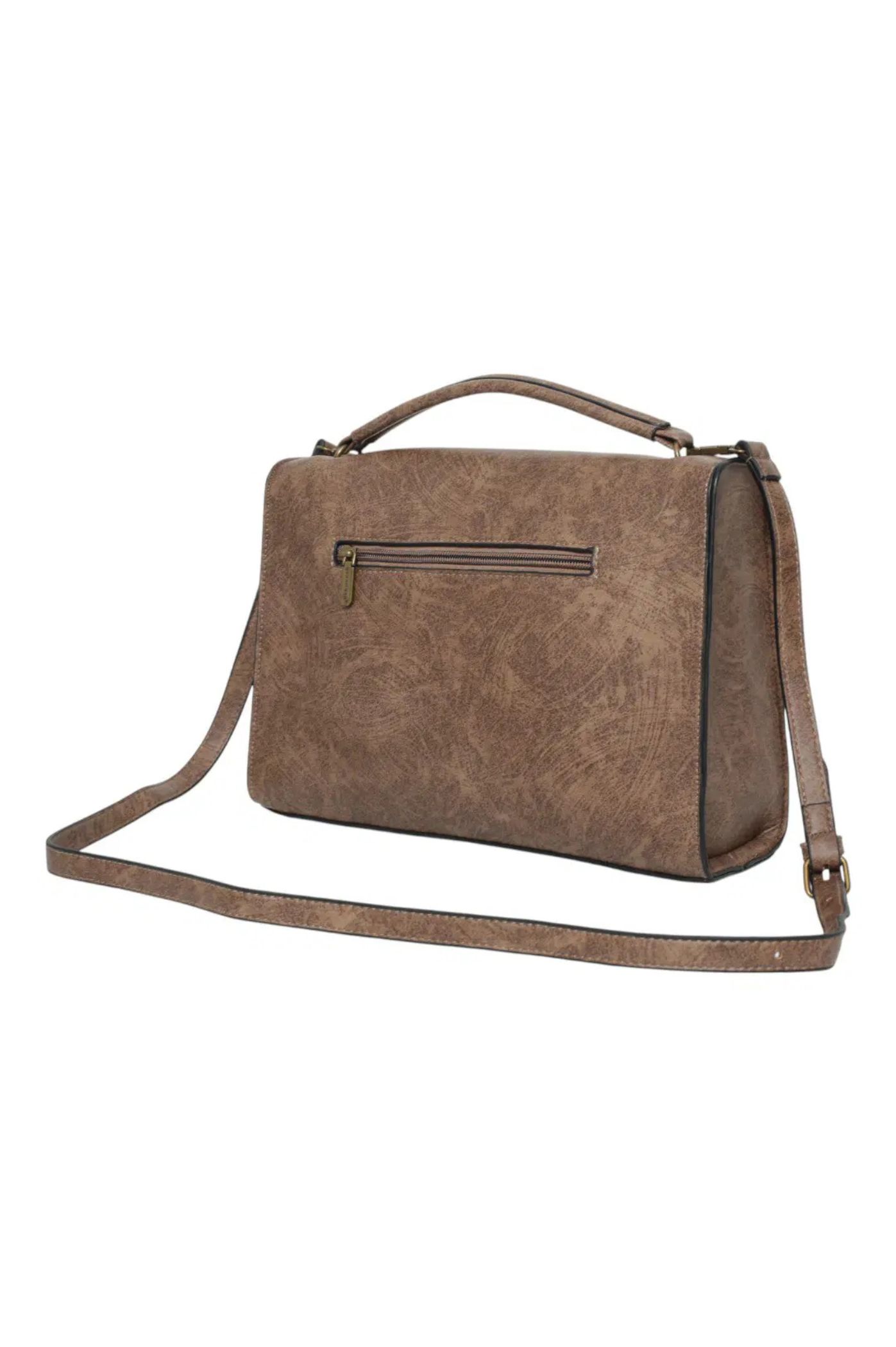 Αναδείξτε το στυλ σας με την απόλυτη statement τσάντα. Αυτή η ευρύχωρη τσάντα σε στυλ satchel ταχυδρόμου συνδυάζει vintage αισθητική με μοντέρνα λειτουργικότητα. Κατασκευασμένη από μαλακή δερματίνη με ελαφρώς "used" υφή, προσδίδει έναν διαχρονικό αέρα στο στυλ σας. Διαθέτει πολλαπλές εξωτερικές θήκες με φερμουάρ και διακοσμητικά τρουκς, προσφέροντας εξαιρετική οργάνωση για τα έγγραφα, το tablet και τα προσωπικά σας αντικείμενα. Μπορεί να κρατηθεί από το κομψό χερούλι ως τσάντα χειρός ή να φορεθεί χιαστί ή στον ώμο με τον ρυθμιζόμενο ιμάντα.