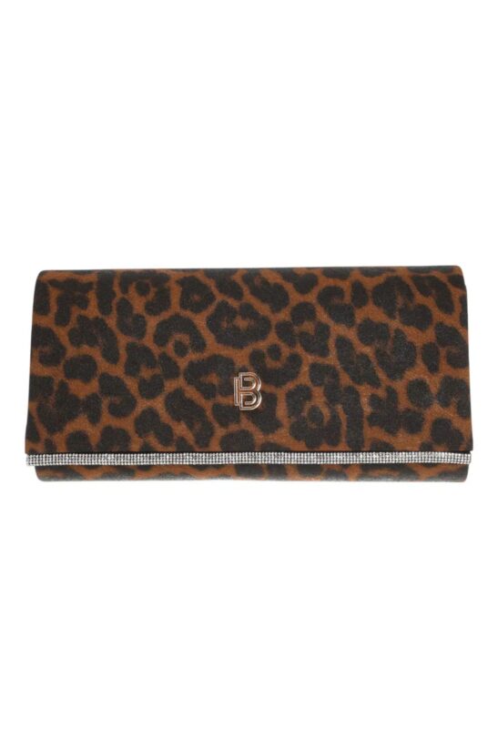 ΤΣΑΝΤΑ CLUTCH ΦΑΚΕΛΟΣ LEOPARD PRINT ΜΕ STRASS – ΚΑΜΕΛ