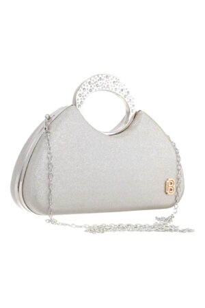 Κλέψτε τις εντυπώσεις με αυτό το Glamour Clutch Bag! Αυτή η βραδινή τσάντα φάκελος ξεχωρίζει χάρη στο μοναδικό της σχήμα με τις κομψές καμπύλες και τη λαμπερή μεταλλιζέ υφή. Το απόλυτο highlight είναι το ενσωματωμένο χερούλι σε σχήμα κρίκου, το οποίο είναι διακοσμημένο με αστραφτερά στρας. Η τσάντα διαθέτει επίσης λεπτή αλυσίδα για να φορεθεί στον ώμο ή χιαστί. Είναι το ιδανικό επίσημο αξεσουάρ για γιορτές, βραδινές εξόδους και εκδηλώσεις.
