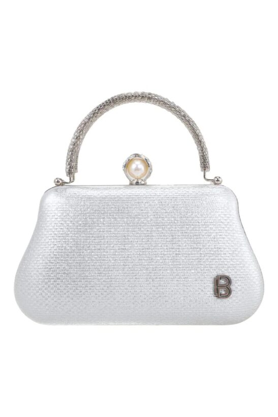 ΤΣΑΝΤΑ CLUTCH ΜΕ ΠΕΡΛΑ ΣΤΟ ΚΟΥΜΠΩΜΑ – SILVER