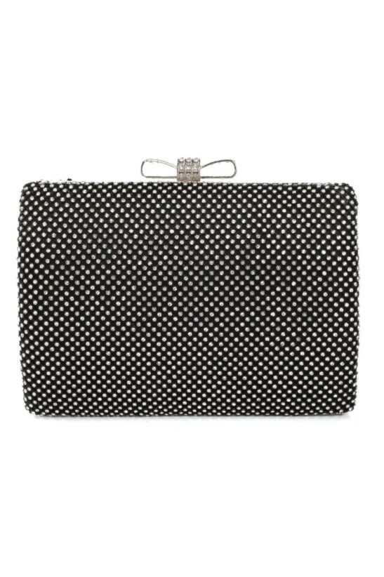 Αναδείξτε το στυλ σας με τον εντυπωσιακό clutch με strass, το ιδανικό αξεσουάρ για τις πιο επίσημες εμφανίσεις σας. Αυτή η πολυτελής τσάντα βραδινή ξεχωρίζει καθώς είναι ολόκληρη καλυμμένη με αστραφτερά στρας σε μια σκληρή, ορθογώνια φόρμα. Προσφέρει μια διαχρονική λάμψη που φωτίζει κάθε σας ντύσιμο. Το κεντρικό στοιχείο της είναι το γοητευτικό κούμπωμα-φιόγκος, διακοσμημένο επίσης με στρας, που προσθέτει μια ρομαντική και παιχνιδιάρικη νότα στο συνολικό, επίσημο design. Είναι η τέλεια τσάντα χειρός για να κρατήσετε τα απαραίτητα με απόλυτη κομψότητα.