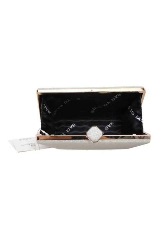 Αναδείξτε την κομψότητά σας με αυτό το εντυπωσιακό μεταλλιζέ Clutch Box! Αυτή η αυστηρή τσάντα φάκελος είναι η επιτομή του glamour. Το μεταλλικό κούμπωμα και η λεπτή αλυσίδα ολοκληρώνουν το σχέδιο, επιτρέποντας να φορεθεί στον ώμο ή χιαστί. Είναι το τέλειο βραδινό αξεσουάρ για επίσημες εκδηλώσεις, γάμους και κοκτέιλ πάρτι.