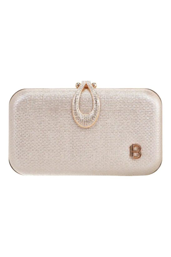 Αναδείξτε το στυλ σας με αυτό το εκθαμβωτικό Box Clutch! Το κύριο χαρακτηριστικό της είναι το ιδιαίτερο μεταλλικό κούμπωμα σε σχήμα κρίκου, το οποίο είναι καλυμμένο εξ ολοκλήρου με αστραφτερά στρας. Διαθέτει επίσης κομψή αλυσίδα, προσφέροντας μια πολυτελή και ευέλικτη επιλογή κρατήματος. Η τέλεια βραδινή τσάντα για γάμους, βαπτίσεις και κοκτέιλ πάρτι.