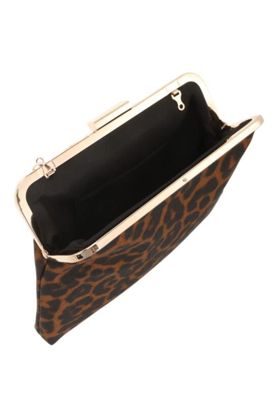 Αναδείξτε το βραδινό σας look με αυτή την εντυπωσιακή τσάντα-φάκελο (clutch) με λεοπάρ μοτίβο . Σε έναν sophisticated συνδυασμό αποχρώσεων, αυτή η τσάντα είναι το απόλυτο αξεσουάρ για κάθε επίσημη περίσταση, γάμο, ή βραδινή έξοδο. Η υφή του υφάσματος προσδίδει μια αίσθηση πολυτέλειας. Το χαρακτηριστικό μεταλλικό κούμπωμα τύπου "πορτοφόλι" (kiss-lock) εξασφαλίζει ότι τα προσωπικά σας αντικείμενα παραμένουν ασφαλή, ενώ δίνει έναν διαχρονικό αέρα vintage γοητείας.
