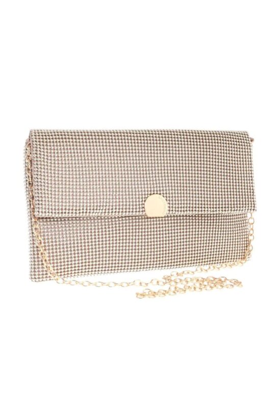 Αναδείξτε το στυλ σας με αυτή την εντυπωσιακή τσάντα φάκελο clutch, το απόλυτο αξεσουάρ για κάθε επίσημη εκδήλωση. Η τσάντα με το μεταλλικό πλέγμα, προσφέρει μια πολυτελή λάμψη που αιχμαλωτίζει το φως.