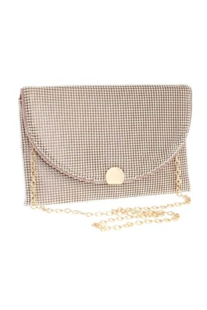 Λάμψτε σε κάθε επίσημη εκδήλωση με τον εντυπωσιακό φάκελο clutch. Ιδανικό για γάμους, βαφτίσεις και βραδινές εξόδους. Το στρογγυλό καπάκι κλείνει με ένα διακριτικό χρυσό κουμπί, ενώ η λεπτή χρυσή αλυσίδα σας επιτρέπει να τον κρατήσετε άνετα στον ώμο ή χιαστί, εκτός από τη χρήση του ως clutch χειρός. Προσθέστε αμέσως λάμψη και πολυτέλεια στο βραδινό σας ντύσιμο με αυτό το must-have αξεσουάρ!