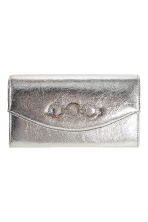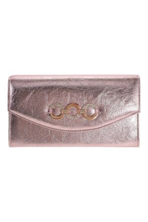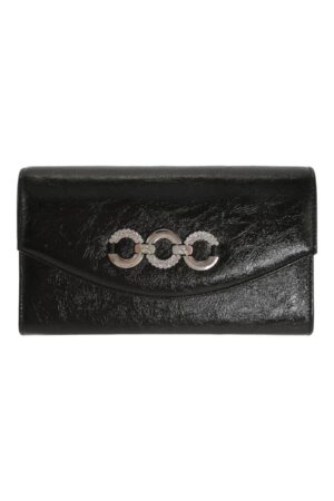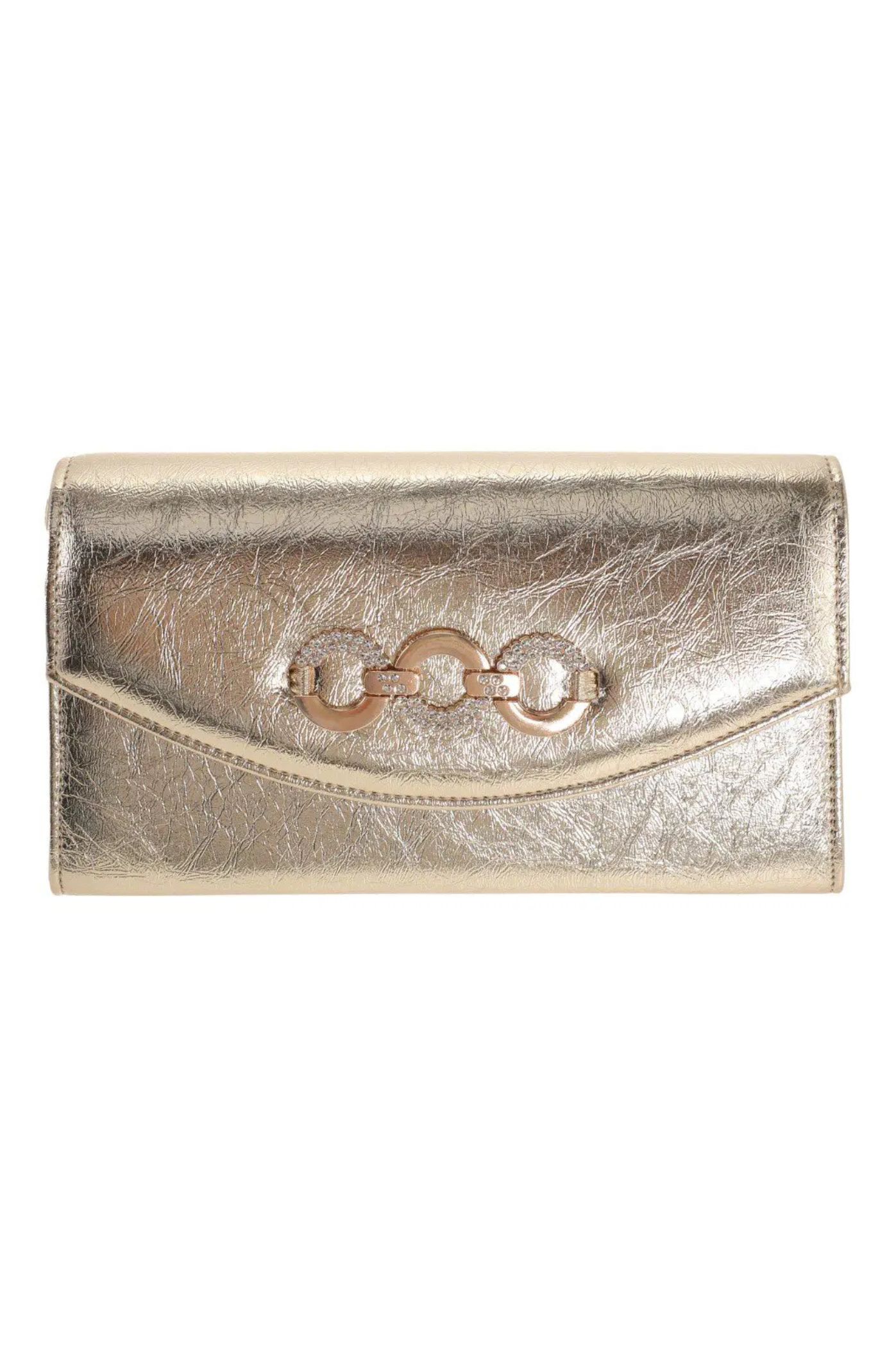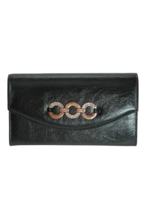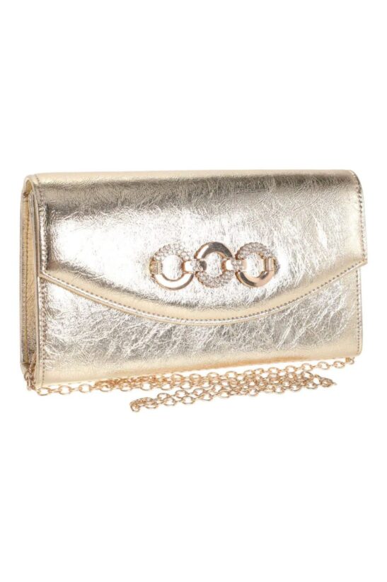 Αναδείξτε το στυλ σας με αυτή τη μοναδική γυναικεία τσάντα φάκελο. Κατασκευασμένη από υψηλής ποιότητας δερματίνη, προσφέρει κομψότητα και λάμψη σε κάθε σας εμφάνιση. Διαθέτει μεταλλικό διακοσμητικό κούμπωμα με κρίκους και διακριτικές στρας λεπτομέρειες, που προσθέτουν έξτρα φινέτσα στο look σας. Η αποσπώμενη μεταλλική αλυσίδα επιτρέπει να φορεθεί τόσο στον ώμο όσο και σαν clutch στο χέρι, καθιστώντας την ιδανική επιλογή για γάμους, επίσημες εξόδους, πάρτι και άλλες ιδιαίτερες περιστάσεις.