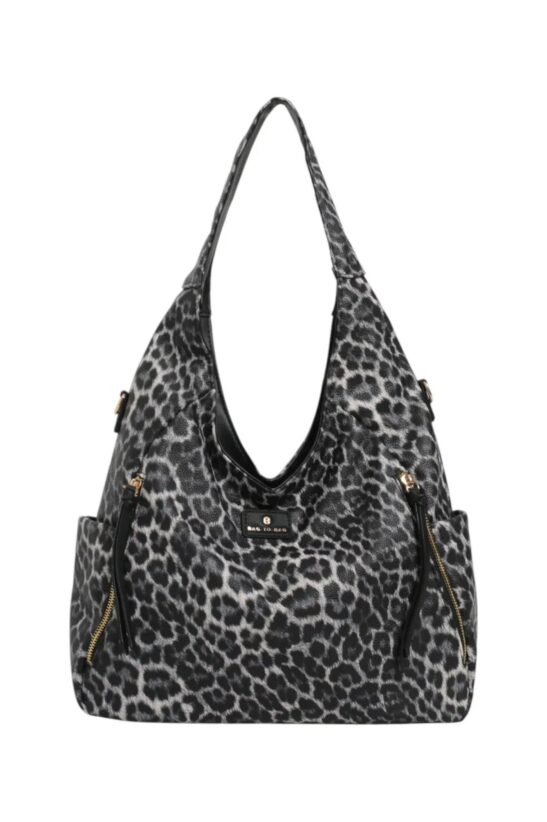 ΤΣΑΝΤΑ ΩΜΟΥ ANIMAL PRINT ΜΕ ΕΞΩΤΕΡΙΚΕΣ ΘΗΚΕΣ – LEOPARD ΜΑΥΡΟ