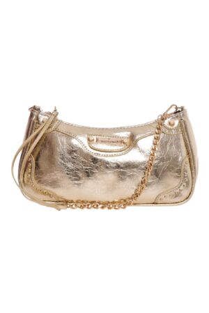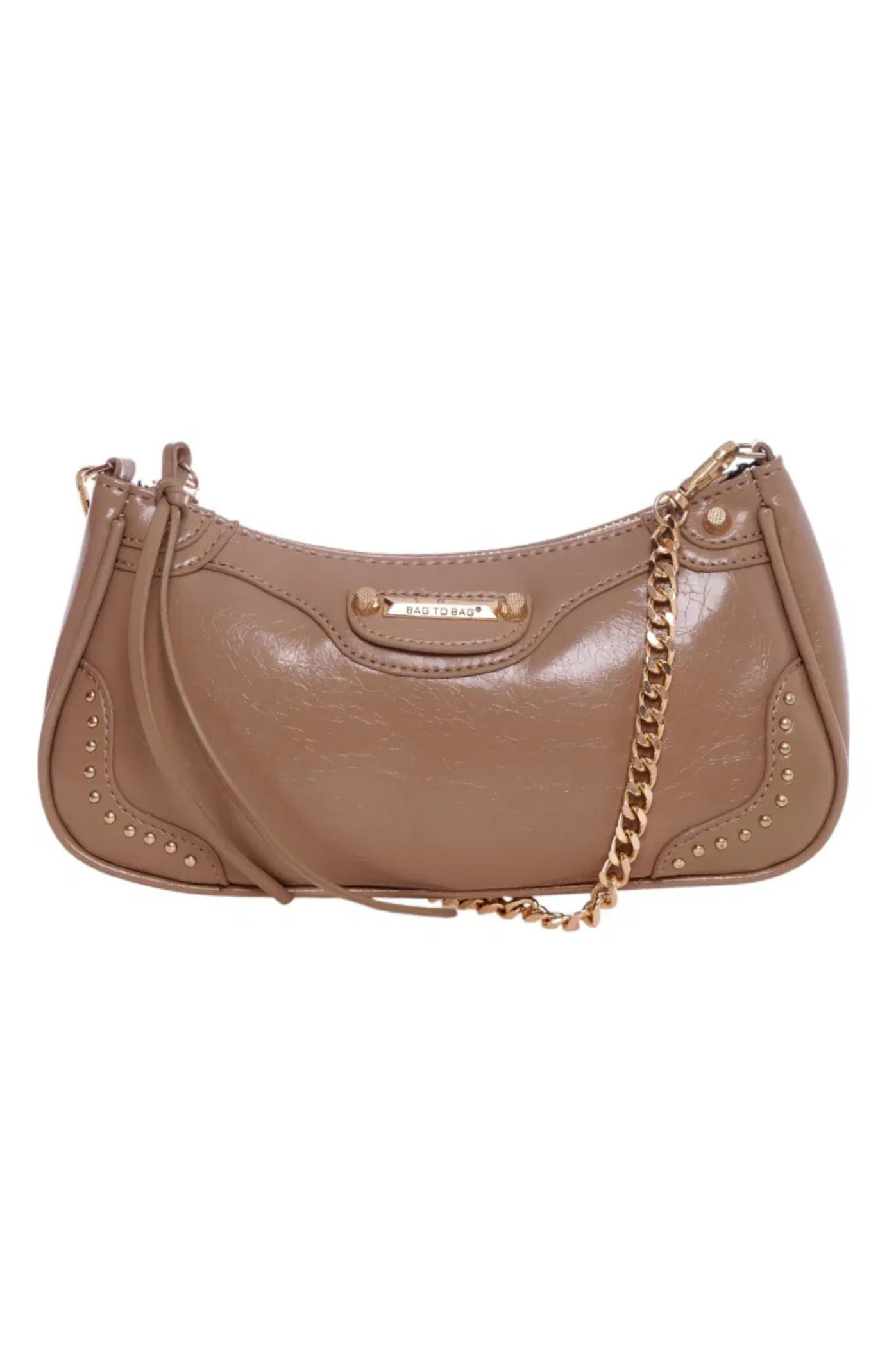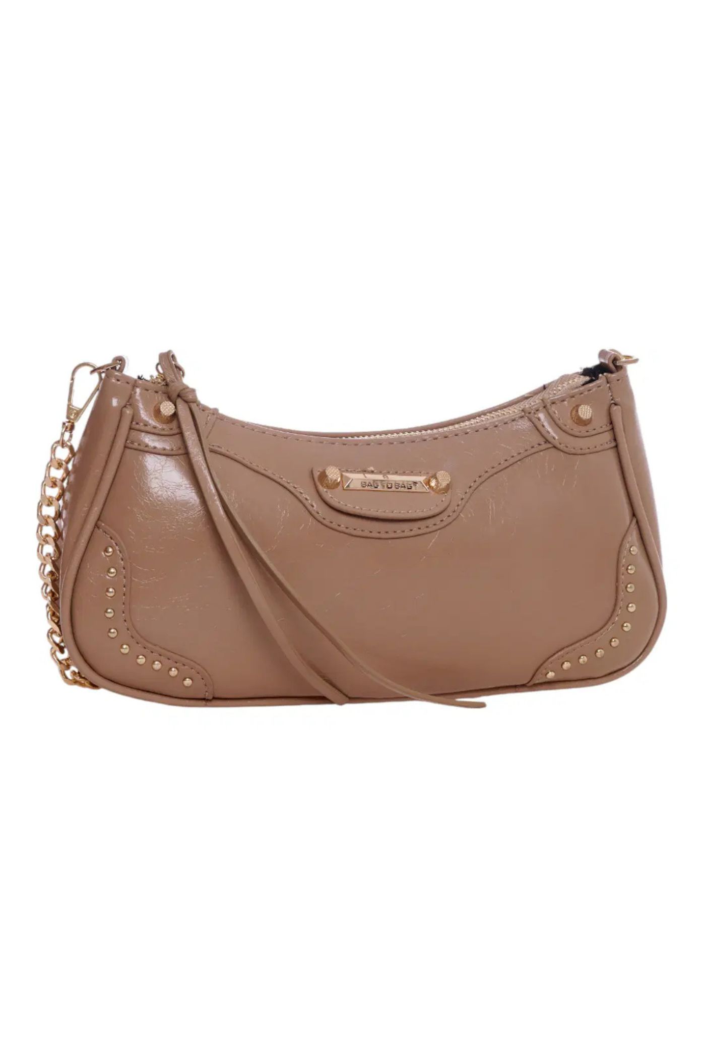 Αναβαθμίστε το στυλ σας με αυτήν την κομψή τσάντα χειρός! Το σχέδιο παραπέμπει στο κλασικό στυλ "Bowling Bag", προσφέροντας αρκετό χώρο και μοναδική αισθητική. Η τσάντα ξεχωρίζει χάρη στις διακοσμητικές λεπτομέρειες, μια διακοσμητική ζώνη με μεταλλικές αγκράφες στο μπροστινό μέρος και μια χρυσή αλυσίδα, που χαρίζουν έναν αέρα chic και μοντέρνας πολυτέλειας. Διαθέτει σταθερά χερούλια για κράτημα στον ώμο ή στο χέρι, και το σχήμα της την καθιστά ιδανική για να οργανώσετε όλα σας τα απαραίτητα