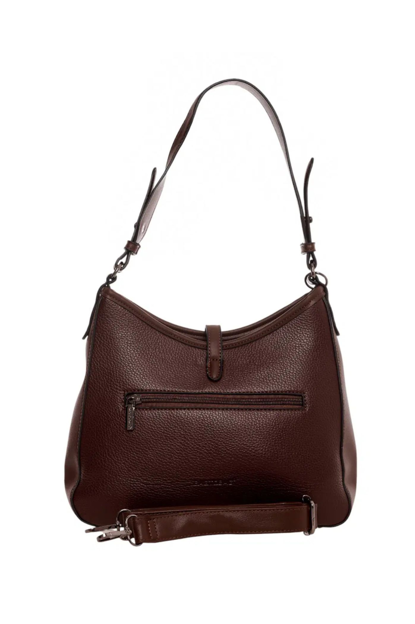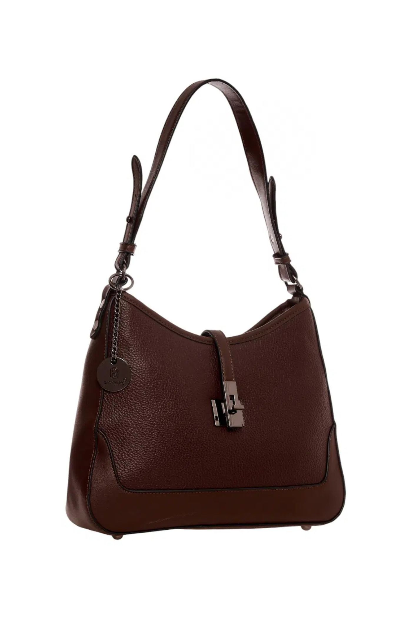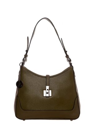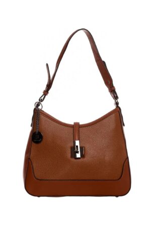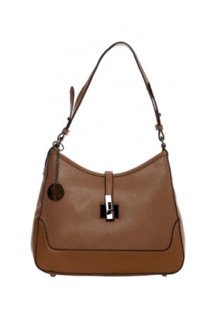 Αναδείξτε το στυλ σας με την τσάντα ώμου που συνδυάζει την κλασική αισθητική με τη μοντέρνα λεπτομέρεια. Αυτή η στυλάτη γυναικεία τσάντα είναι κατασκευασμένη από υψηλής ποιότητας δερματίνη με υπέροχη ανάγλυφη υφή, προσφέροντας μια luxurious αίσθηση. Το σχήμα της είναι μισοφέγγαρο με σταθερή βάση, καθιστώντας την ευρύχωρη και πρακτική. Η τσάντα διαθέτει ένα εντυπωσιακό μεταλλικό κούμπωμα ασφαλείας στο μπροστινό μέρος, προσθέτοντας μια statement πινελιά. Το ρυθμιζόμενο λουρί ώμου επιτρέπει άνετη εφαρμογή, ενώ η μεταλλική λεπτομέρεια με το λογότυπο στο πλάι ολοκληρώνει το εκλεπτυσμένο design. Ιδανική για το γραφείο, μια κομψή βραδινή έξοδο ή τις φθινοπωρινές εμφανίσεις σας.
