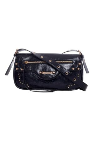 Αναδείξτε μια edgy και rock chic διάθεση στην εμφάνισή σας με αυτή τη μοναδική τσάντα χιαστί. Κατασκευασμένη από γυαλιστερή δερματίνη είναι το τέλειο αξεσουάρ για να ολοκληρώσετε κάθε σας outfit. Η τσάντα διαθέτει εντυπωσιακές χρυσές λεπτομέρειες, μικρά τρουκς περιμετρικά του καπακιού και ένα φερμουάρ στο επάνω μέρος, προσφέροντας ασφάλεια και στυλ. Ο ρυθμιζόμενος ιμάντας ώμου-χιαστί είναι διακοσμημένος με μεταλλικά τρύπες, ενισχύοντας τον δυναμικό της χαρακτήρα. Το μέγεθός της είναι ιδανικό για να τη φοράτε καθημερινά αλλά και στις βραδινές σας εξόδους. Αν ψάχνετε για μια τσάντα με τρουκς που να ξεφεύγει από τα συνηθισμένα, αυτό το κομμάτι είναι απαραίτητο!