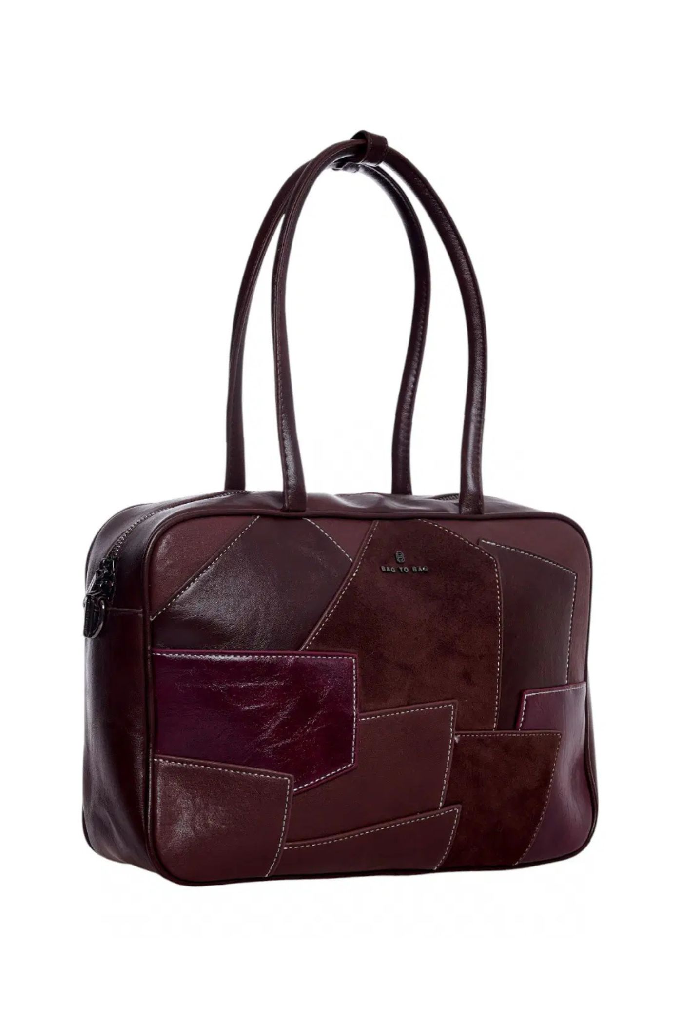 ΤΣΑΝΤΑ ΩΜΟΥ ΔΕΡΜΑΤΙΝΗΣ PATCHWORK – ΜΠΟΡΝΤΟ