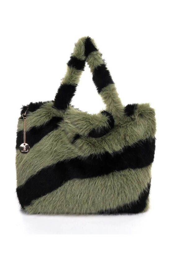 ΤΣΑΝΤΑ ΩΜΟΥ FAUX FUR ANIMAL PRINT – ZEBRA ΧΑΚΙ