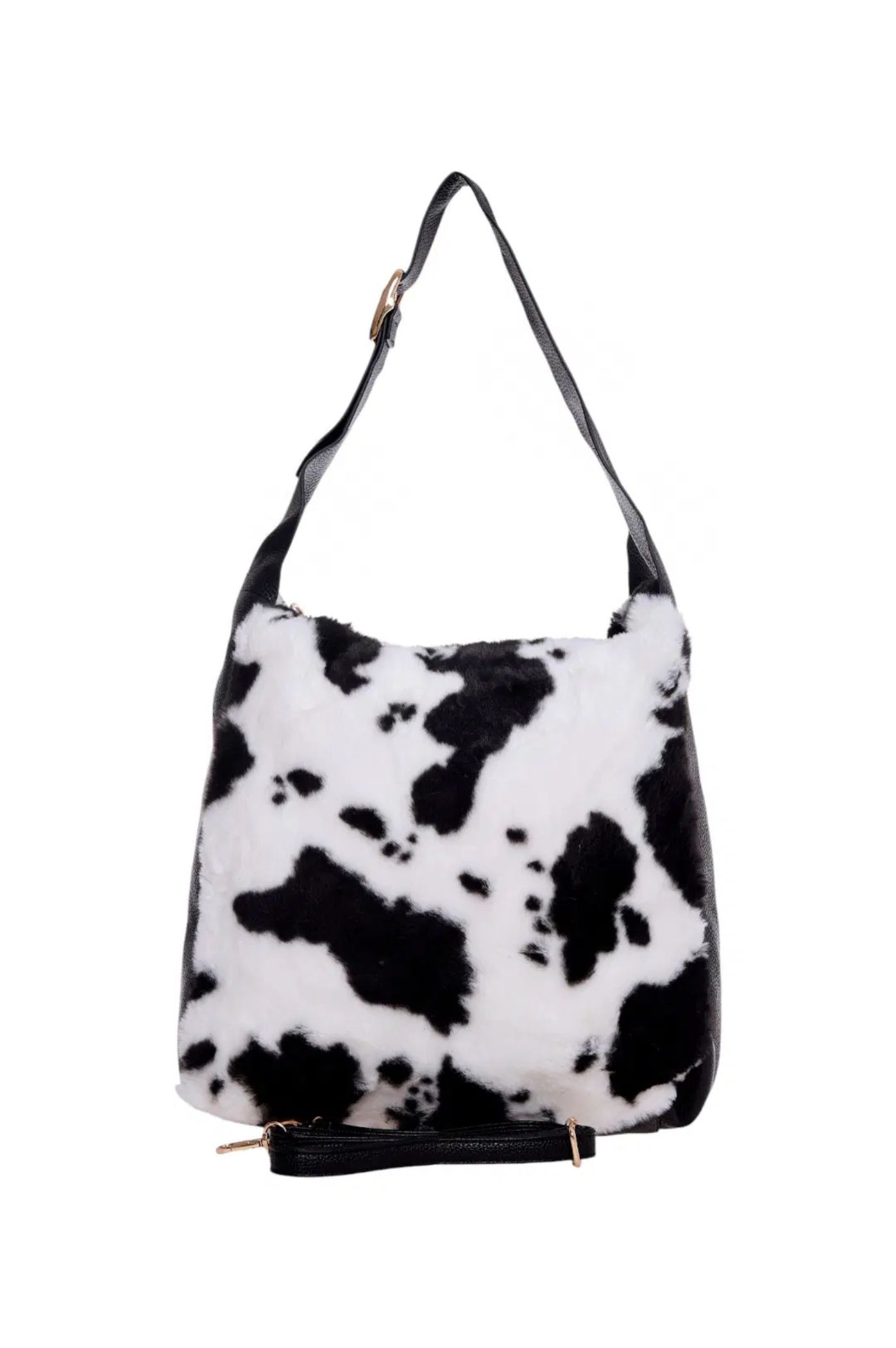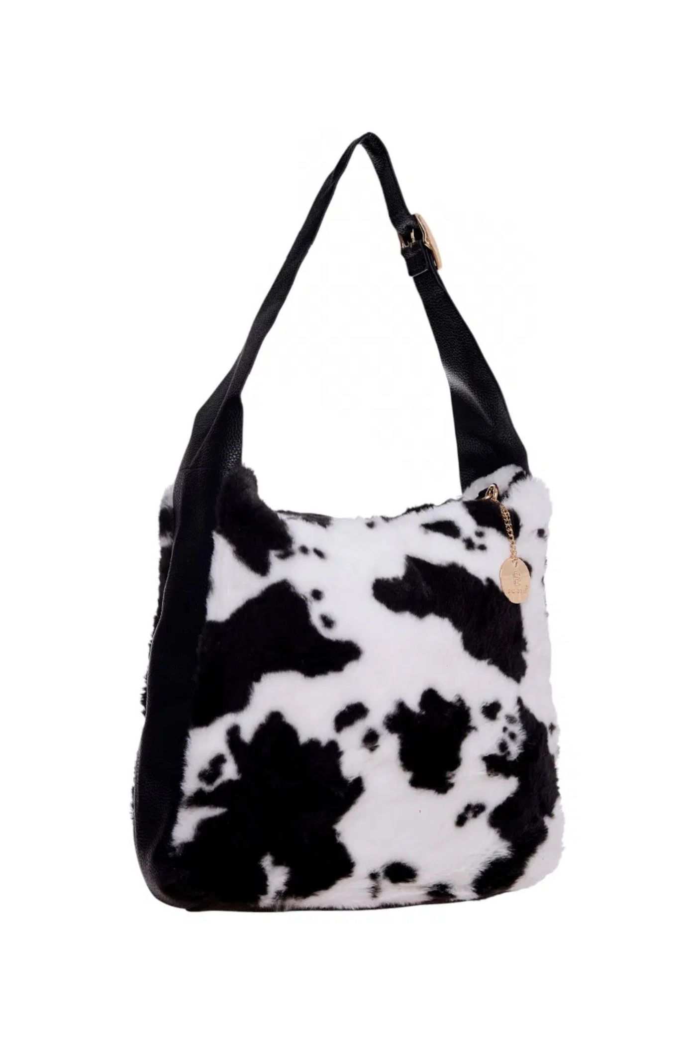 ΤΣΑΝΤΑ ΩΜΟΥ ΓΟΥΝΙΝΗ ΜΕ ΛΕΠΤΟΜΕΡΕΙΕΣ ΔΕΡΜΑΤΙΝΗΣ COW PRINT – ΜΑΥΡΟ