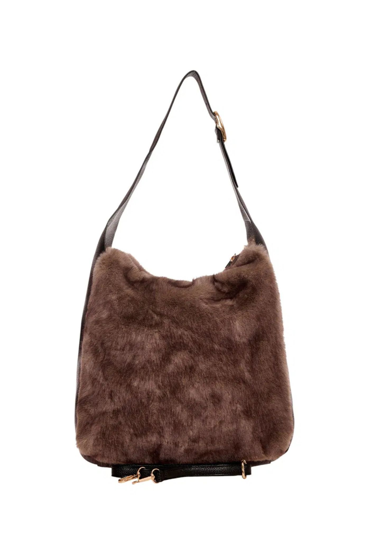 Κάντε μια statement εμφάνιση με την πιο trendy τσάντα της σεζόν! Αυτή η χειμερινή τσάντα ώμου ξεχωρίζει χάρη στην απαλή τεχνητή γούνα που καλύπτει το μεγαλύτερο μέρος της, προσδίδοντας ζεστασιά και πολυτέλεια στο στυλ σας. Η τσάντα διαθέτει λεπτομέρειες από δερματίνη στα πλαϊνά και τον ρυθμιζόμενο ιμάντα ώμου, δημιουργώντας μια κομψή αντίθεση υλικών. Το σχήμα pouch/hobo bag είναι ευρύχωρο και πρακτικό για την καθημερινή σας χρήση ή τις βραδινές εξόδους. Είναι η ιδανική επιλογή για όσους αναζητούν μια ξεχωριστή γούνινη τσάντα που θα ολοκληρώσει τις φθινοπωρινές και χειμωνιάτικες εμφανίσεις τους με μια πινελιά hygge αισθητικής.