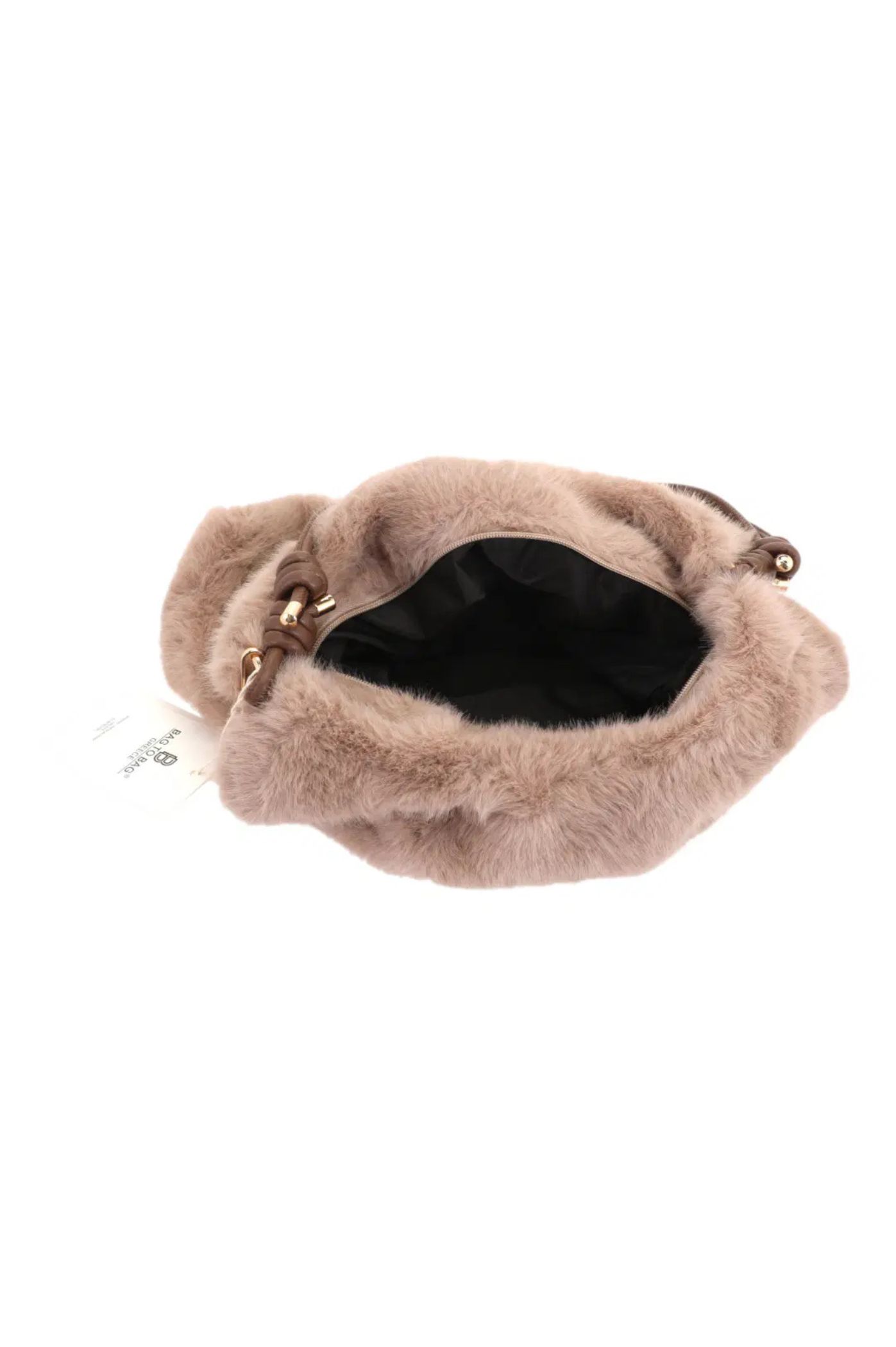 Ανανέωσε το στυλ σου με αυτή την υπέροχη γούνινη τσάντα ώμου! Το απαλό, χνουδωτό υλικό από faux fur την κάνει το απόλυτο αξεσουάρ για τις κρύες μέρες, προσφέροντας μια αίσθηση πολυτέλειας και ζεστασιάς. Οι κόμποι στα σημεία ένωσης του ιμάντα με την τσάντα προσθέτουν μια παιχνιδιάρικη και μοντέρνα πινελιά. Είναι ευρύχωρη και ιδανική για να χωρέσει τα απαραίτητα για τις καθημερινές σου βόλτες ή για μια βραδινή έξοδο. Η διακριτική μεταλλική λεπτομέρεια με το λογότυπο προσδίδει επιπλέον κομψότητα.