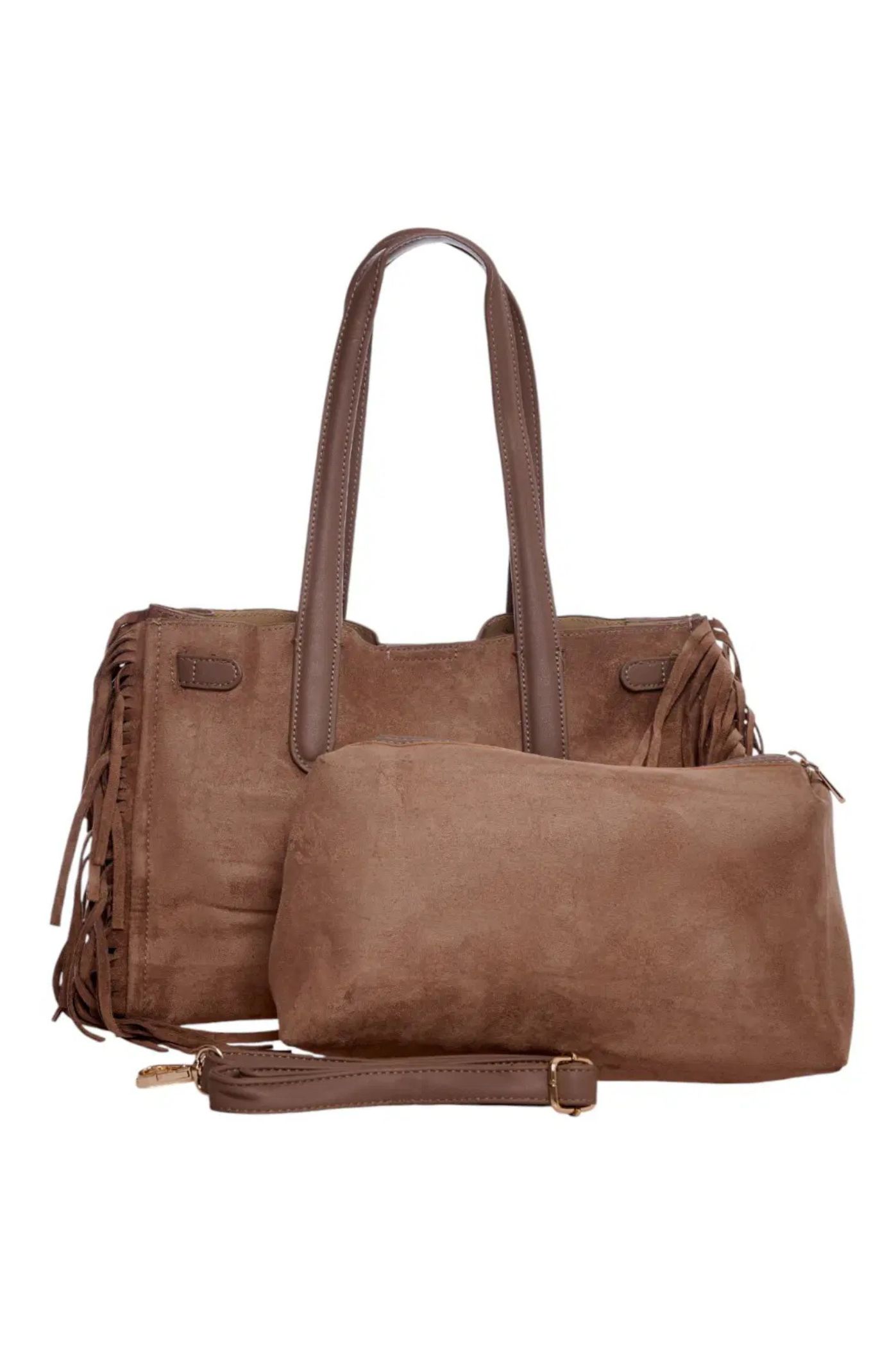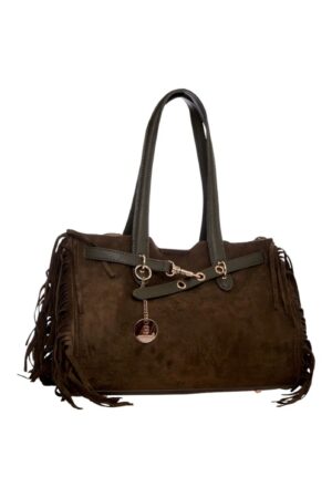 Αναδείξτε το στυλ σας με την πιο μοντέρνα γυναικεία τσάντα ώμου της σεζόν! Αυτή η τσάντα συνδυάζει την αίσθηση του καστόρ με την παιχνιδιάρικη διάθεση των κροσιών στα πλαϊνά, δημιουργώντας ένα απόλυτα boho-chic αποτέλεσμα. Το ιδιαίτερο μεταλλικό κούμπωμα στο μπροστινό μέρος, εκτός από διακοσμητικό στοιχείο, προσθέτει μια νότα πολυτέλειας και εξασφαλίζει το κλείσιμο με στυλ. Το μοναδικό χαρακτηριστικό αυτής της τσάντας είναι το αποσπώμενο τσαντάκι που περιλαμβάνεται. Μπορείτε να το χρησιμοποιήσετε ως νεσεσέρ, πορτοφόλι. Η μεγάλη τσάντα είναι αρκετά ευρύχωρη για να χωρέσει όλα τα καθημερινά σας αντικείμενα.