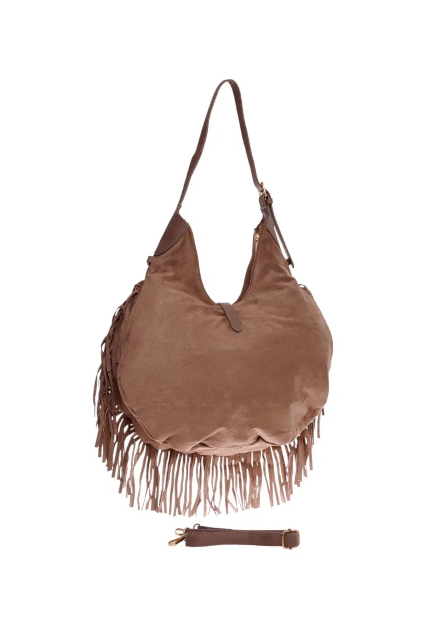 Αναδείξτε το στυλ σας με αυτή την υπέροχη καστόρινη τσάντα ώμου. Το μοντέρνο σχέδιο με κρόσσια στις πλευρές και στη βάση προσφέρει μια boho chic αισθητική που ταιριάζει σε κάθε περίσταση — από casual εμφανίσεις μέχρι βραδινές εξόδους. Διαθέτει άνετο εσωτερικό χώρο, ρυθμιζόμενο λουρί ώμου και ασφαλές κλείσιμο με καπάκι και μεταλλική λεπτομέρεια. Ιδανική επιλογή για γυναίκες που αγαπούν το στυλ, την άνεση και τις μοντέρνες λεπτομέρειες.